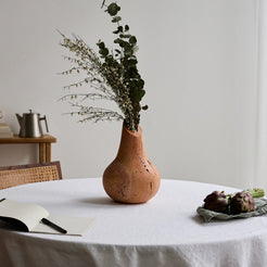 In unserem Atelier handgefertigt, ist die Aion Vase ein einzigartiges skulpturales Objekt, das aus seltenem Naturstein gearbeitet wird. Ihre warmen, erdigen Töne und die organische Oberfläche offenbaren den unverwechselbaren Charakter des Steins, geformt zu einem sanft gerundeten Korpus mit einem schlanken, verlängerten Hals. Jedes Stück ist vollständig einzigartig und existiert nur ein einziges Mal auf der Welt.