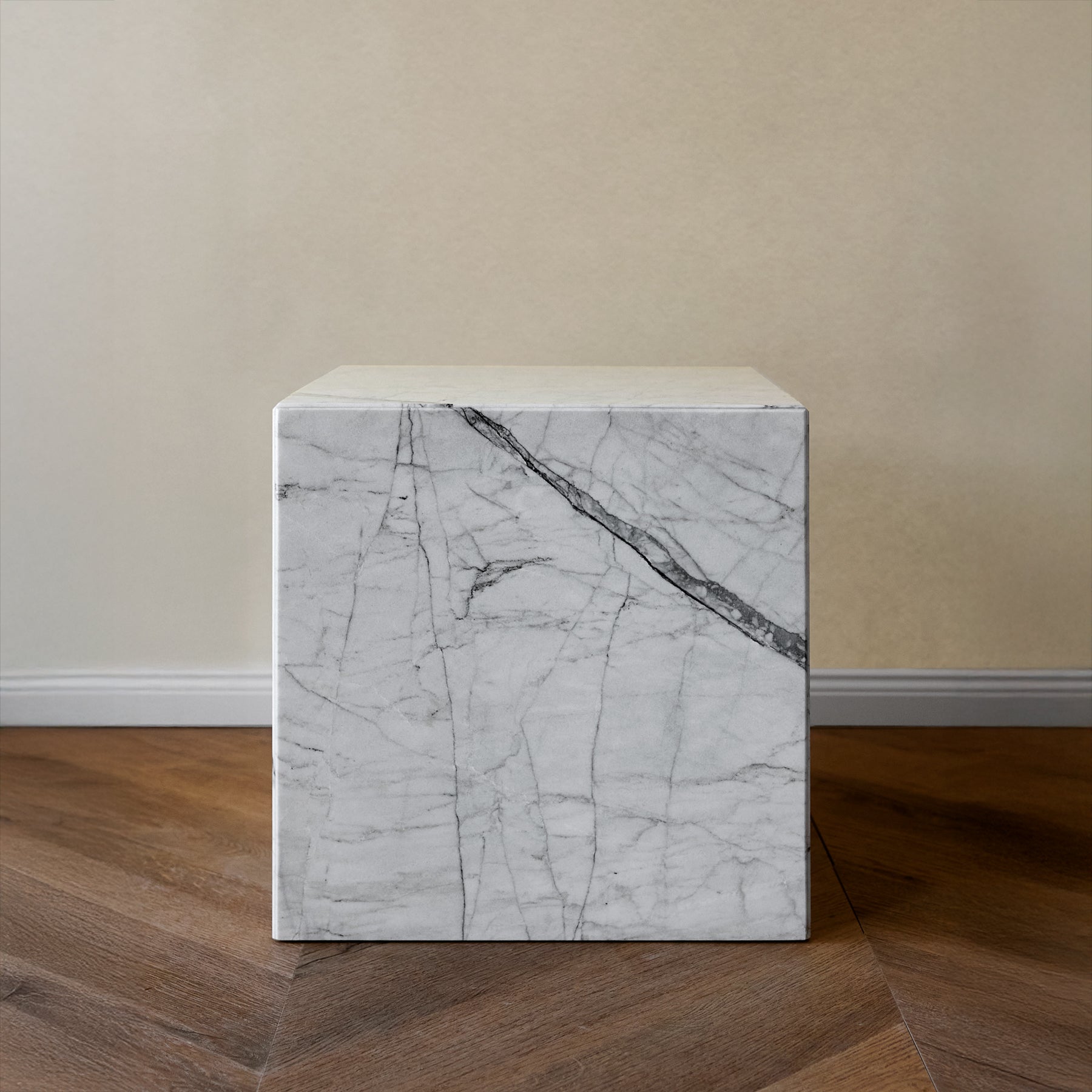 Aria ist ein skulpturaler Beistelltisch, gefertigt aus handverlesenen Marmorslabs, ausgewählt für ihre charakteristische Maserung und natürliche Tiefe. Massiv und ruhig ausdrucksstark vereint das Objekt architektonische Klarheit mit der Sanftheit organischen Steins, sodass jede Fläche ihren eigenen, stillen Rhythmus entfaltet. Die Reduktion der Form verleiht Aria eine zeitlose Präsenz – elegant, geerdet und mühelos raffiniert.