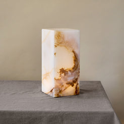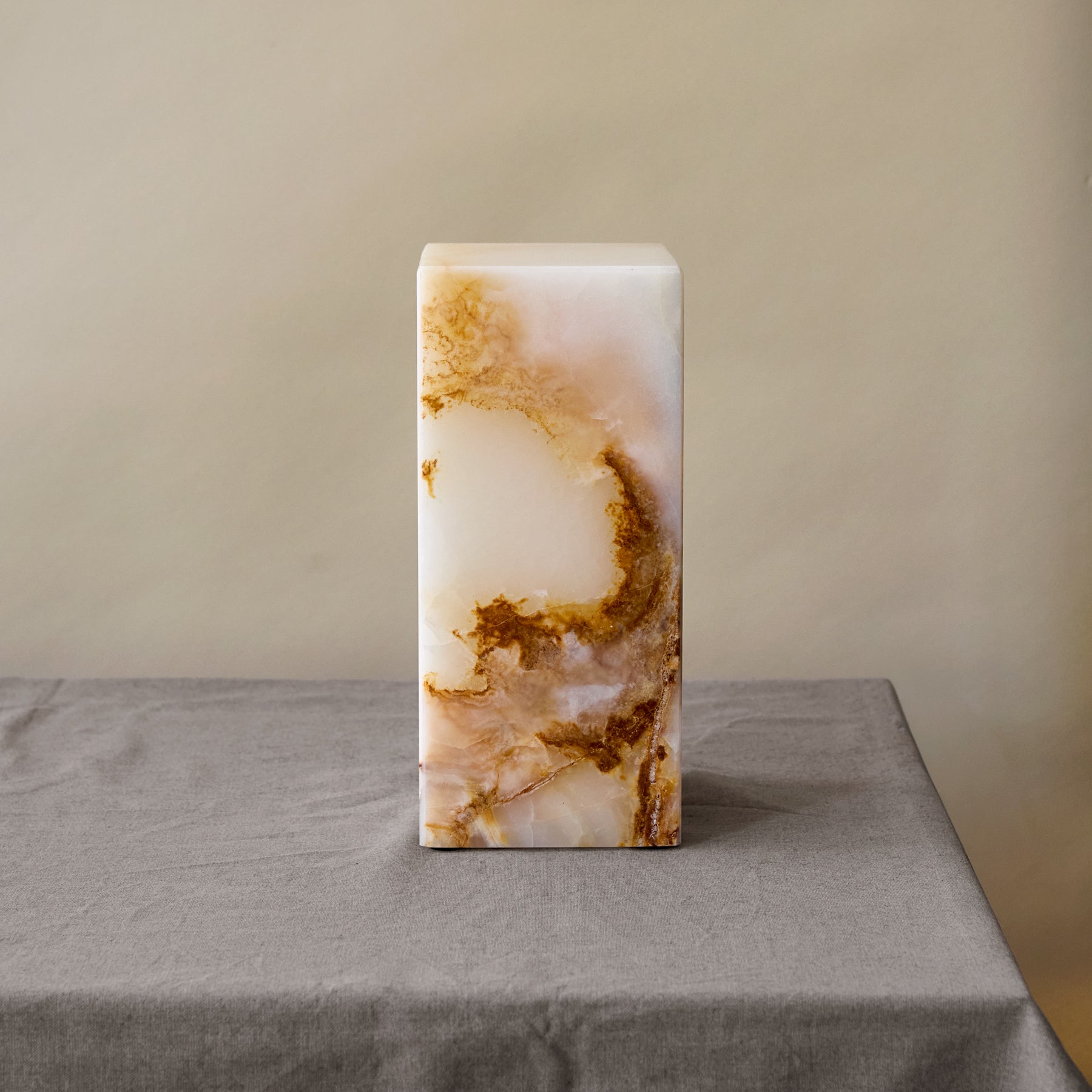 Helios ist eine skulpturale Onyxleuchte, geprägt von ihrer vertikalen, monolithischen Form und einer ausdrucksstarken...