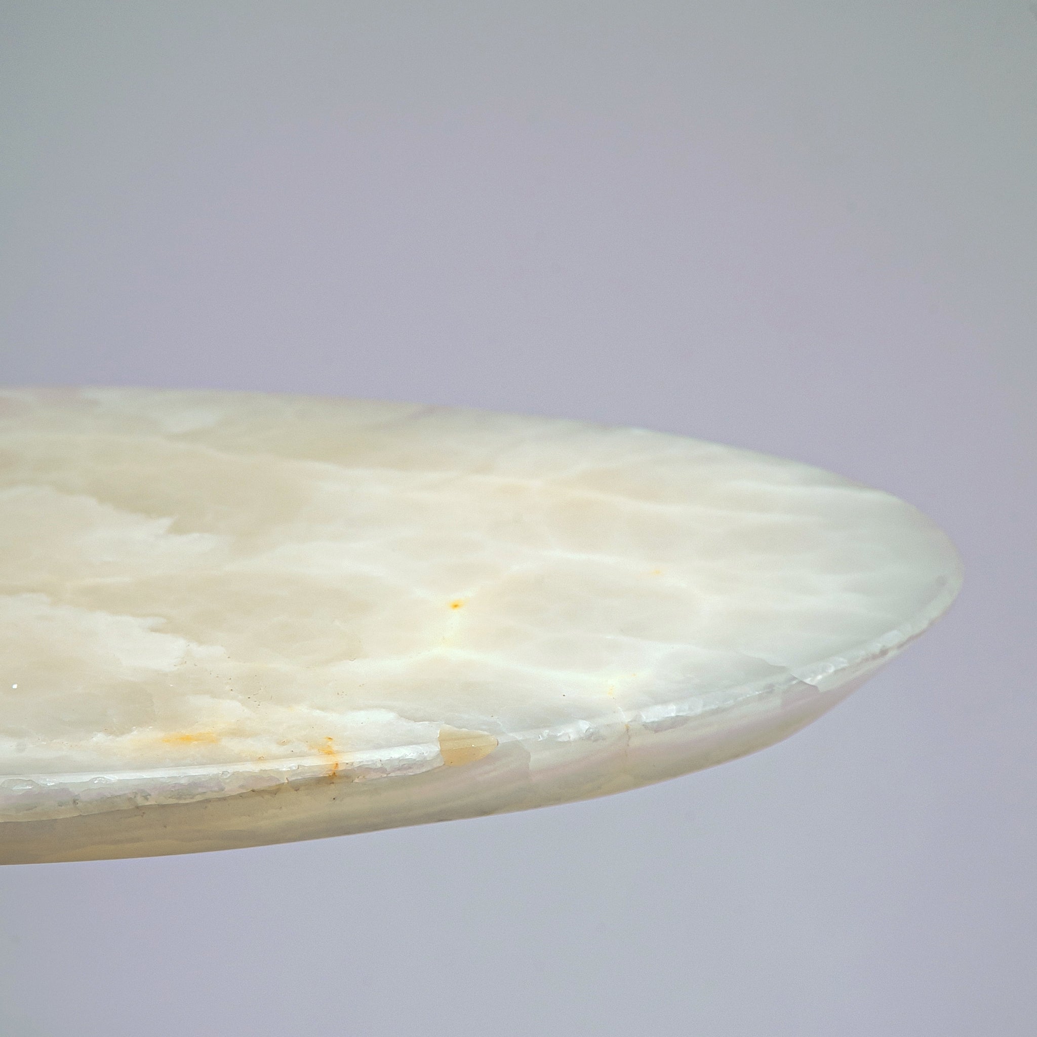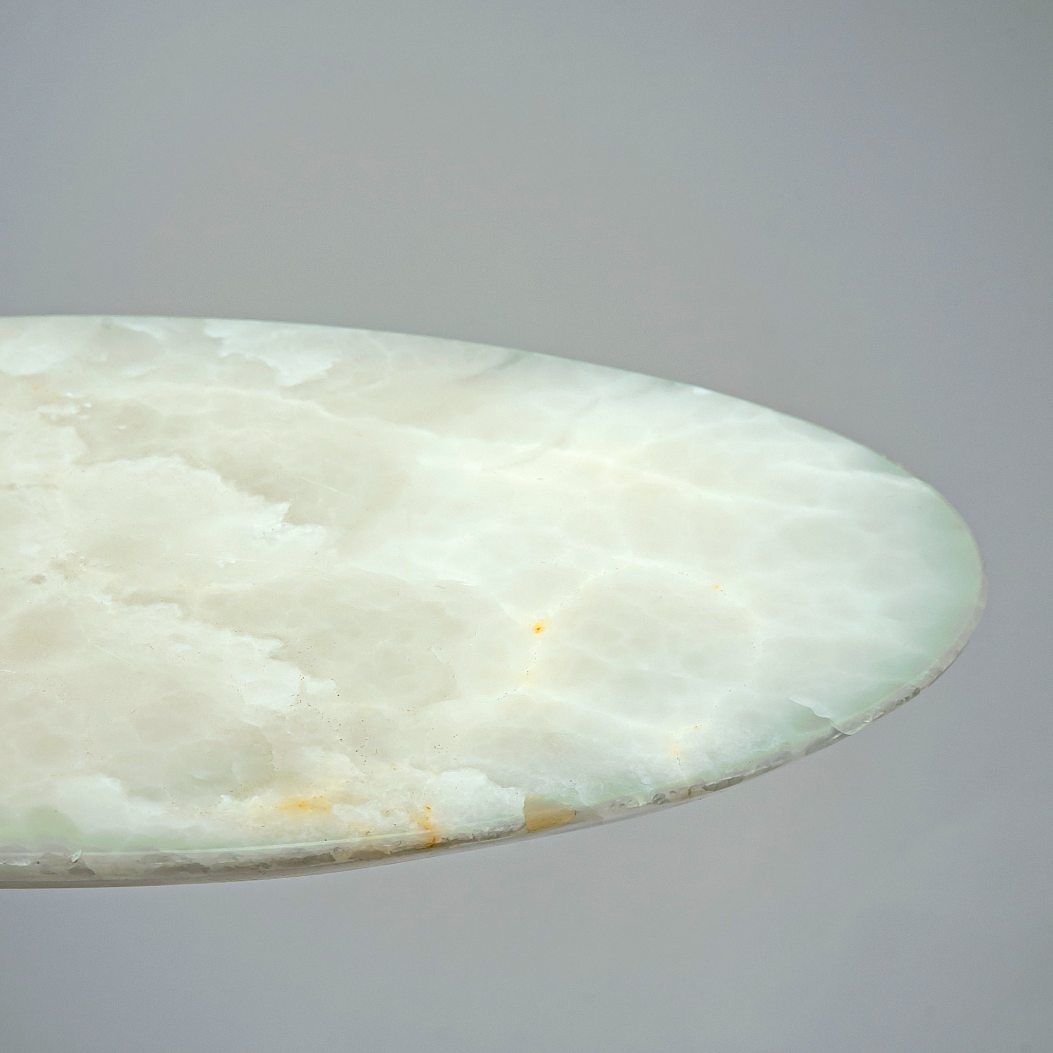 Das Obsidra Tablett ist eine Hommage an zurückhaltenden Luxus. Es ist aus cremeweißem Onyx geschnitzt, der mit sanfter Transluzenz glänzt. Seine glatte, längliche Form unterstreicht die natürlichen Maserungen und subtilen goldenen Untertöne des Steins, wodurch jedes Stück zu einem Unikat wird.