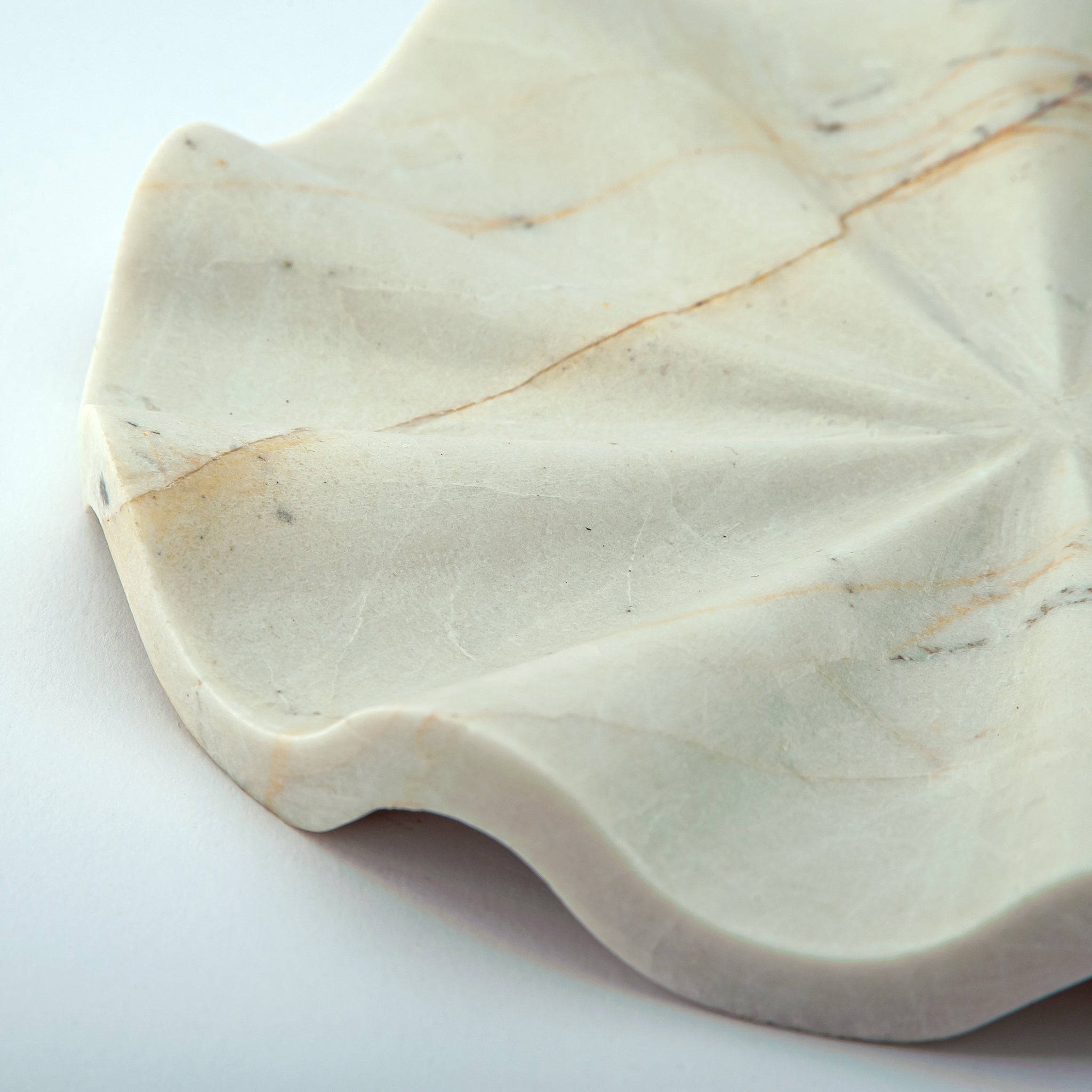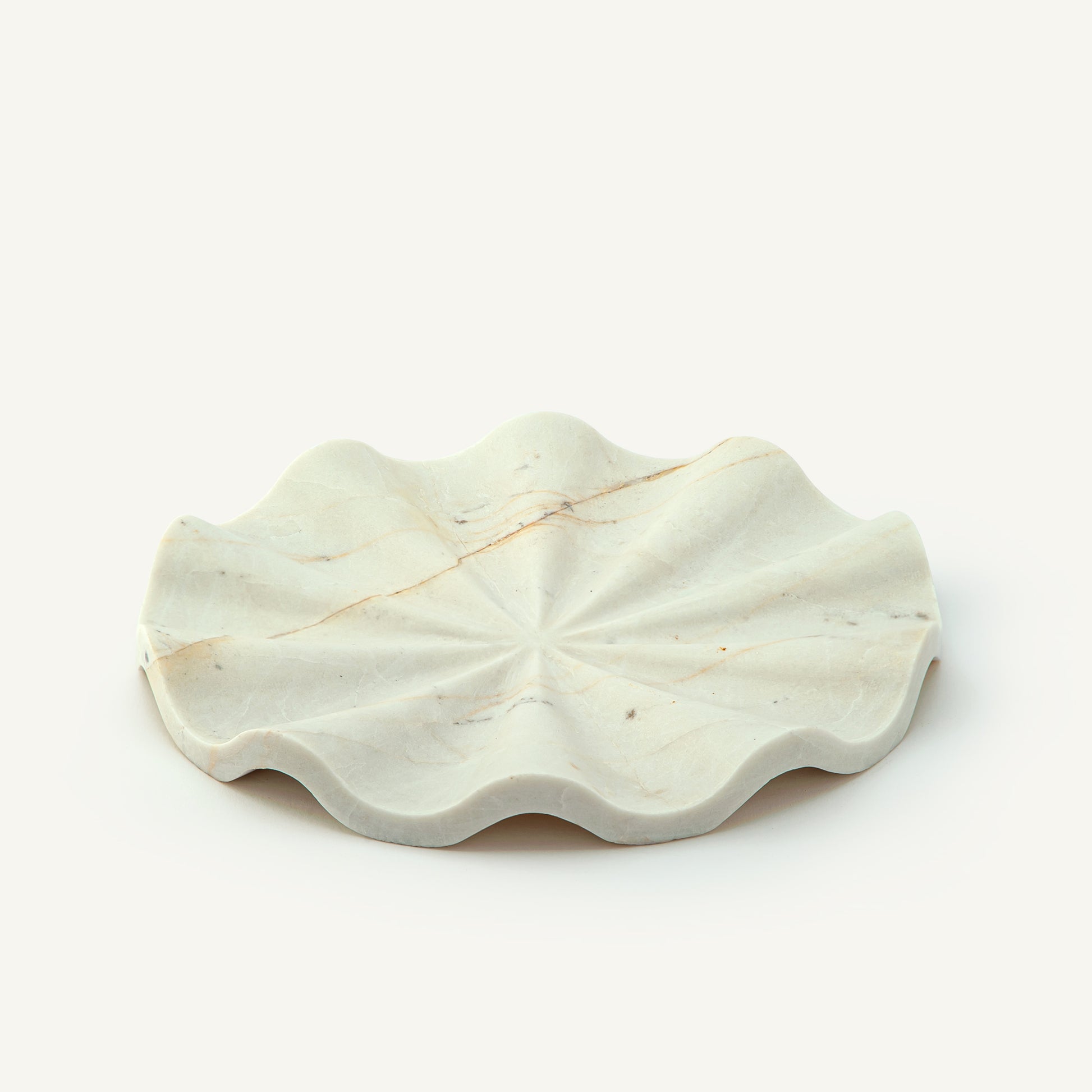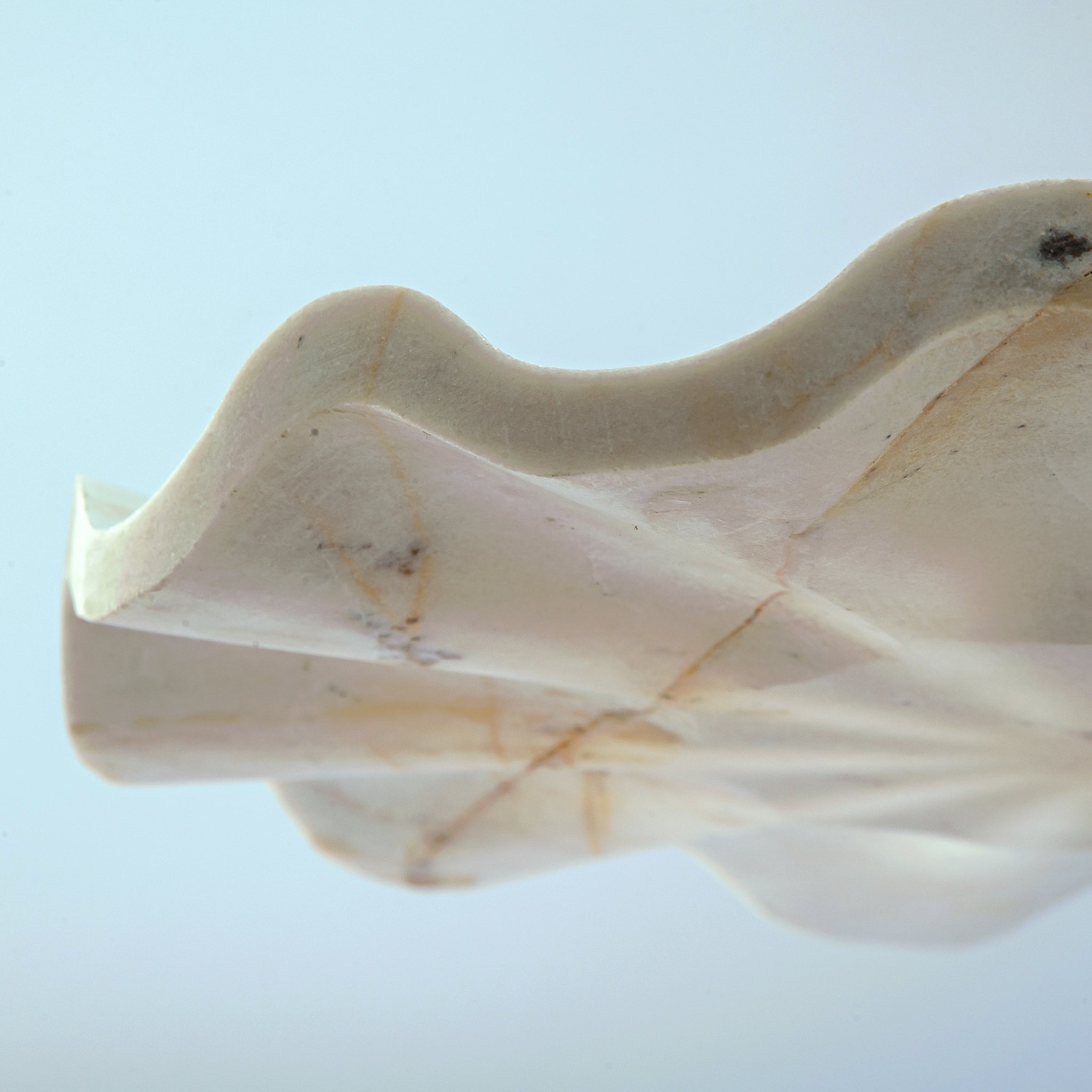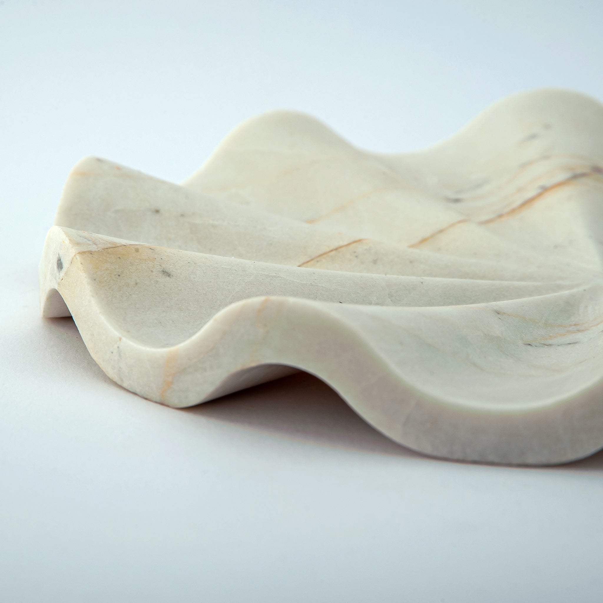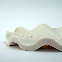 Aus einem seltenen Naturstein gefertigt, besticht das Ondina Tablett durch sanfte Elfenbeintöne und eine feine mineralische Maserung. In unserem Atelier von Hand gefertigt, erinnert seine fließende, wellenartige Silhouette an die stille Bewegung von Wasser, eingefangen im Stein. Jedes Stück ist ein absolutes Unikat – kein Exemplar gleicht dem anderen. Dieses Tablett existiert nur ein einziges Mal auf der Welt.