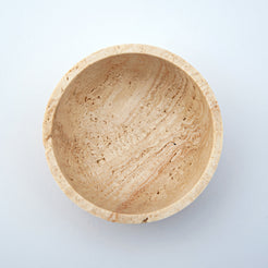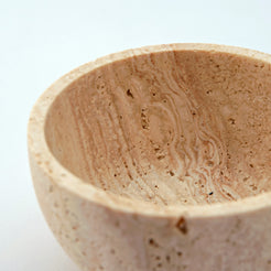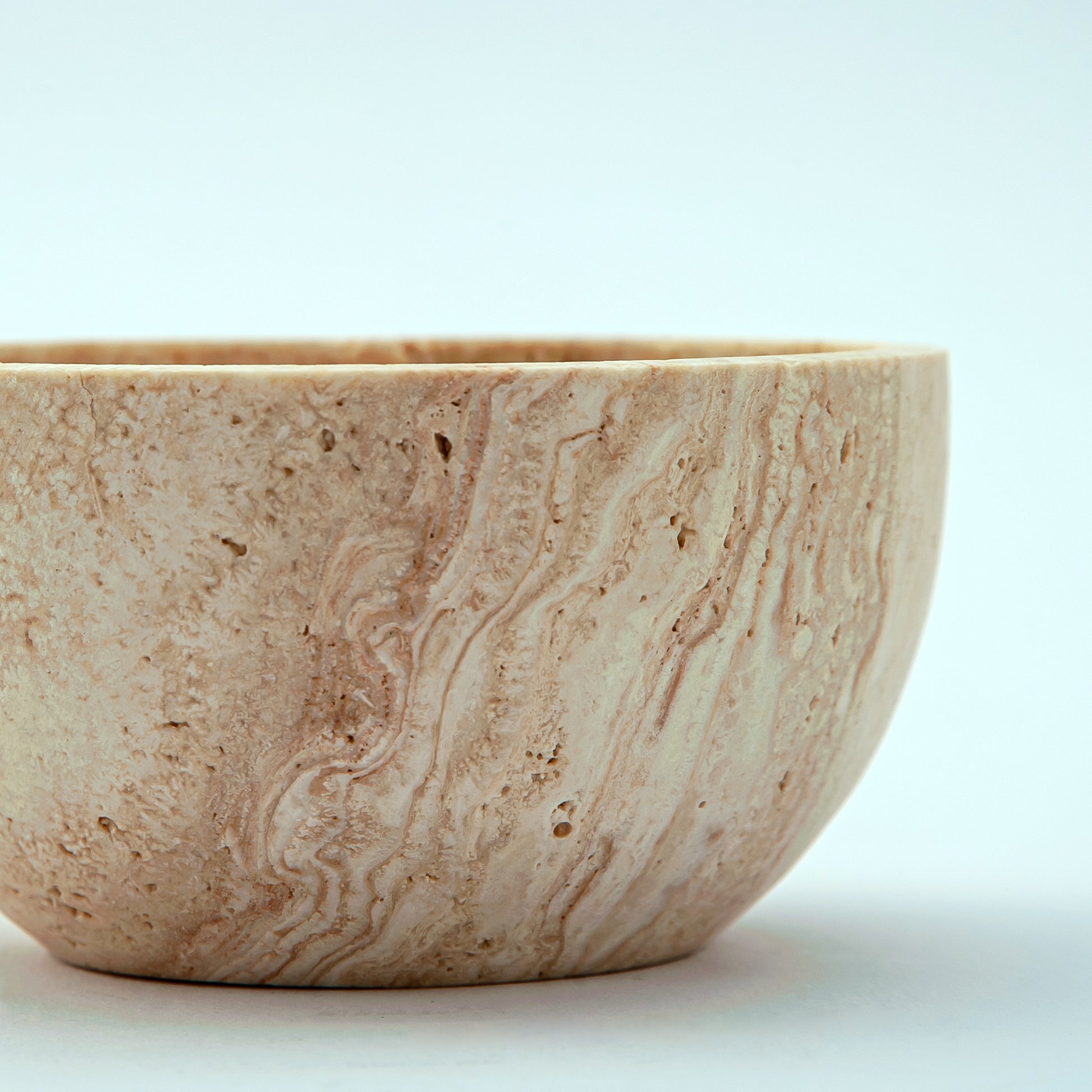 Die Orris Bowl ist aus natürlichem Travertin handgeschnitzt und zelebriert die ruhige Schönheit der Einfachheit. Ihre abgerundete Form und ihr glatter Innenraum unterstreichen die organische Textur des Steins, seine sanften Farbverläufe, subtilen Poren und fließenden Adern, die jedes Stück zu einem Unikat machen.