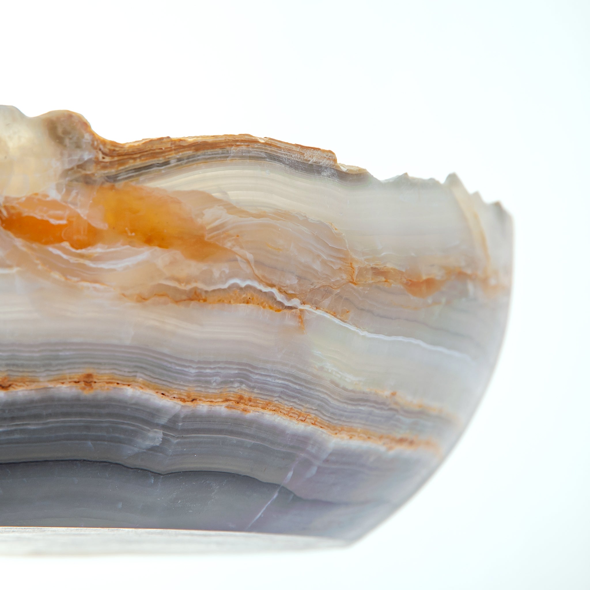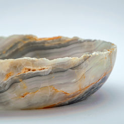 Aionyx is a one of a kind handcrafted piece, created in our atelier from rare natural onyx. Carefully shaped and polished by hand, its soft oval form highlights the stone’s natural stratification, with layered tones of grey, milky white, and warm amber veining flowing organically through the surface.