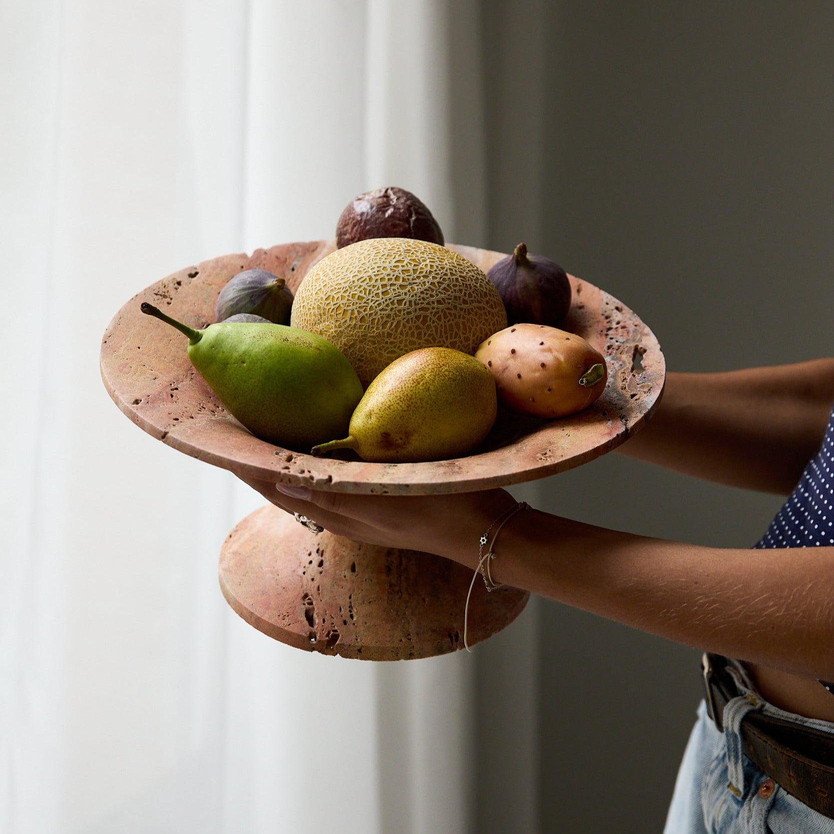 Designed to be both functional and decorative, the Amara Travertine Bowl serves as a striking centerpiece, perfect for holding fruit, displaying cherished objects, or standing alone as a sculptural element. Its timeless design bridges the past and present, bringing a sense of history and sophistication to any space.