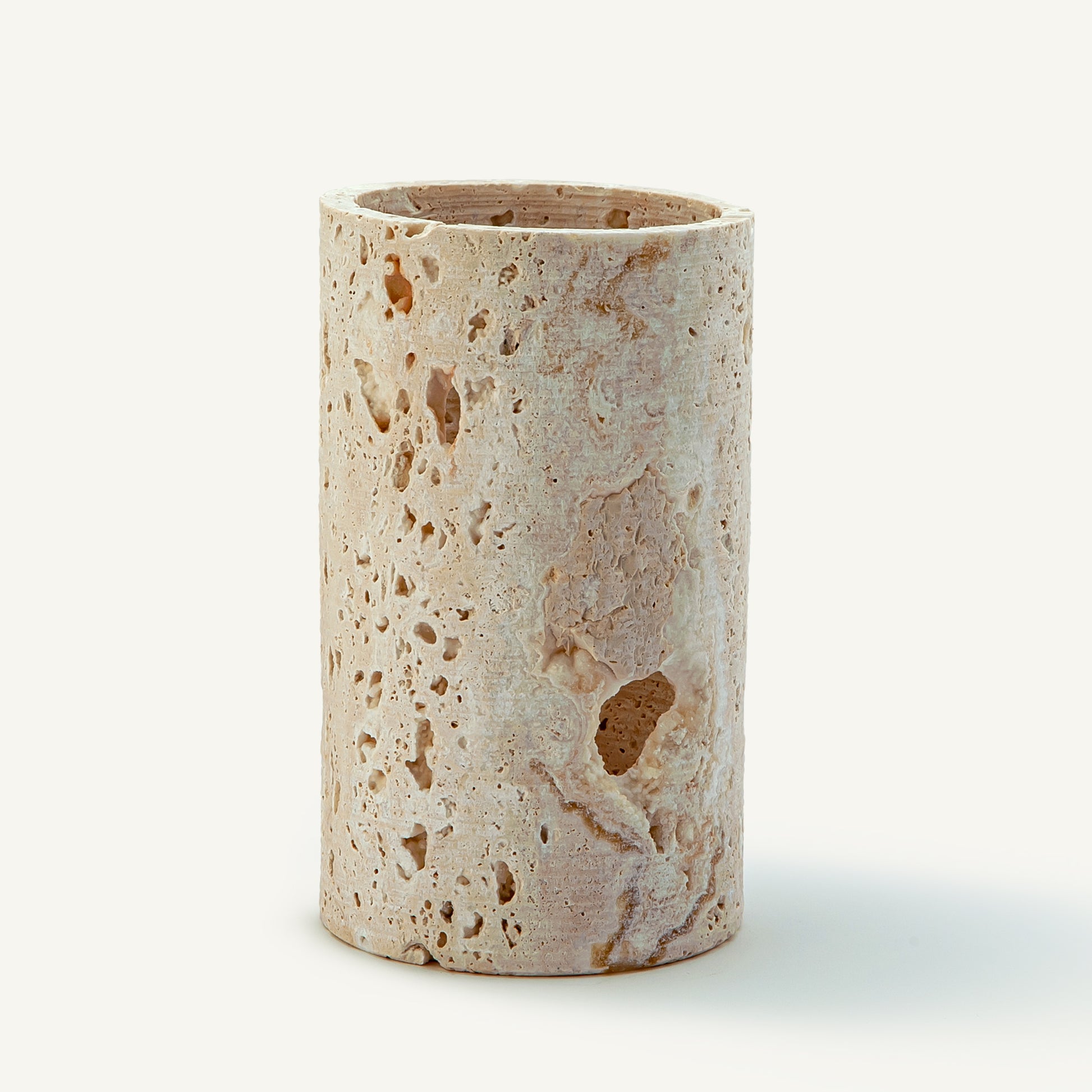The Arden Vase celebrates the quiet strength of nature through the timeless beauty of travertine. Hand-carved from solid travertine, its cylindrical form reveals soft tonal variations and organic pores that make each piece inherently unique.