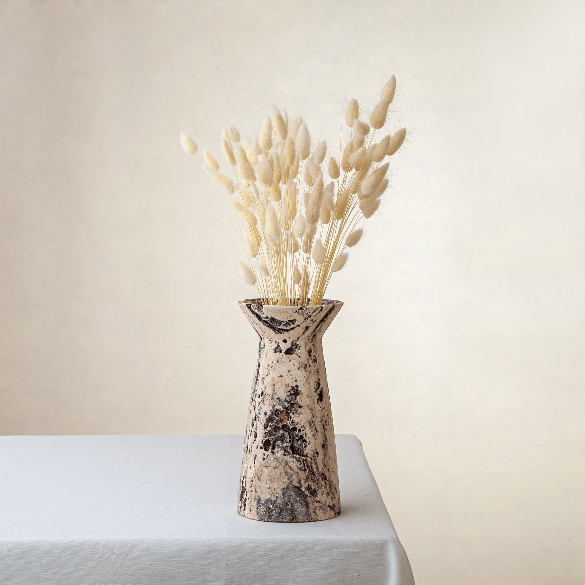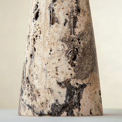 Shaped from solid travertine and finished by hand, each vase reveals the unique character of the stone from which it is formed. Variations in pattern, tone, and texture are inherent, making every piece one of a kind.