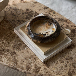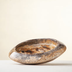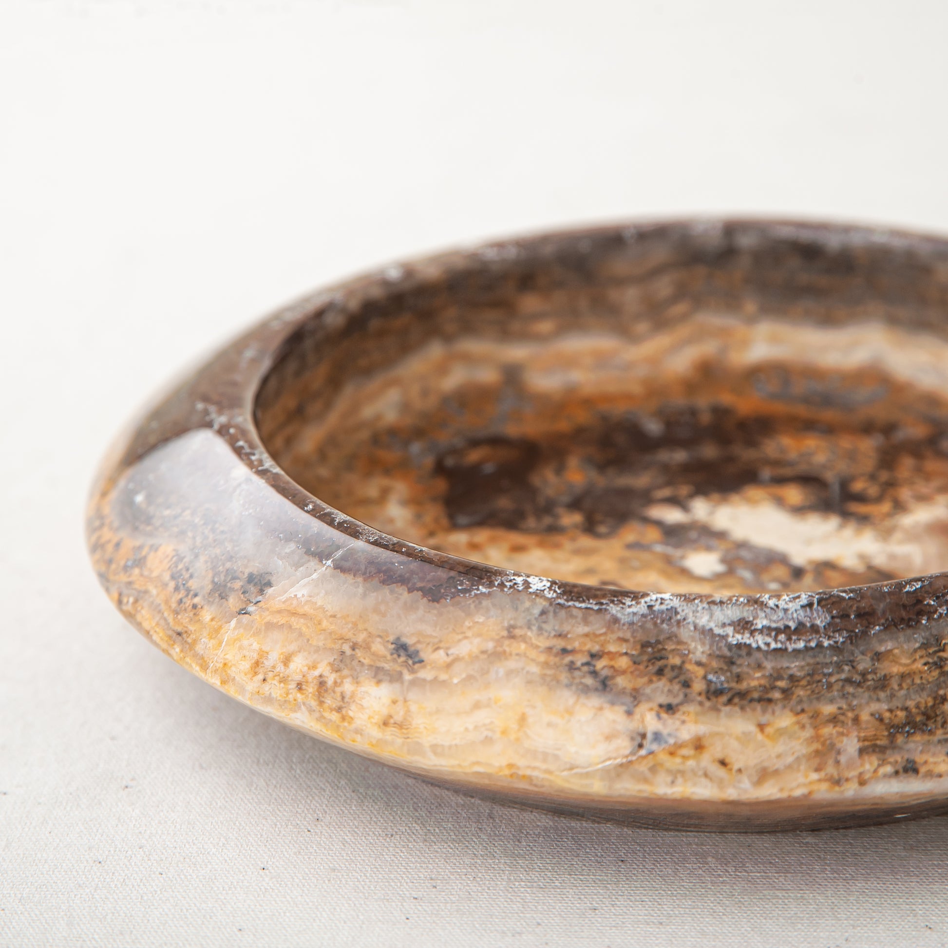 Hand-carved from rare brown onyx, the Aurambra Bowl is a warm, sculptural centrepiece shaped by nature and refined by our artisans. Its deep amber and espresso-toned layers were formed over millions of years, creating a naturally occurring gradient that cannot be replicated. Every angle reveals a new interplay of shadow and light, giving this piece its quiet, glowing aura — the inspiration behind its name.