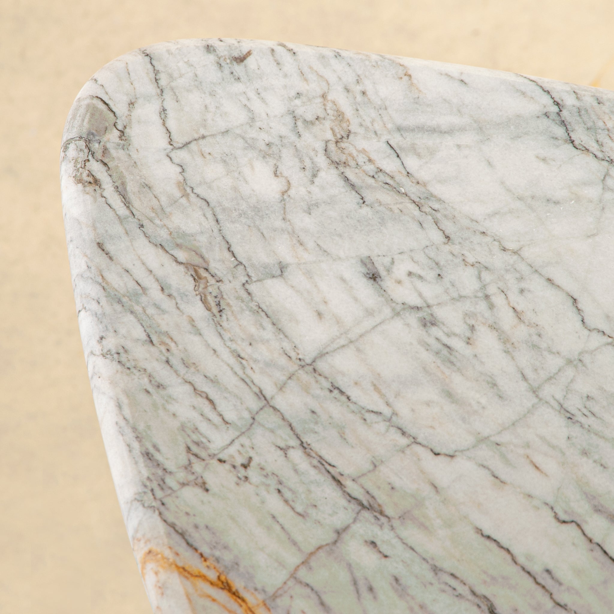 Natural veining flows gently across the surface, revealing subtle tonal variations that make each table entirely unique. Cool, timeless, and quietly powerful, Calderis is designed as both a functional surface and a collectible object. No two pieces are alike — this side table exists as a one-of-a-kind expression of stone, owned by you alone.