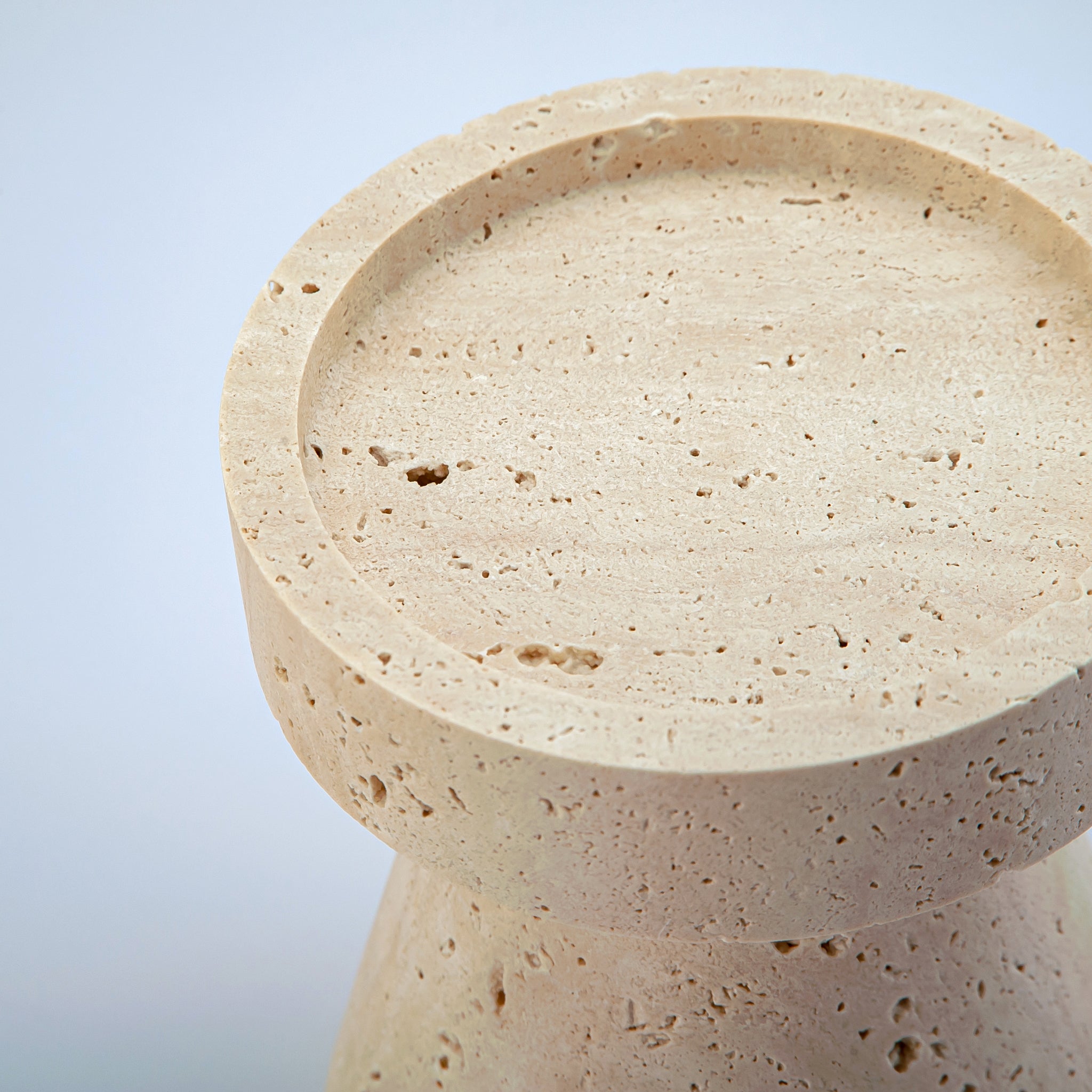 The Calvian Candle Holder is a striking blend of minimalism and natural texture, handcrafted from honed travertine. Its geometric, tapered base supports a wide, flat rim, creating a piece that feels both grounded and sculptural. The natural pores and subtle tonal variations of the stone make every holder one of a kind, adding organic warmth to its clean, architectural silhouette. Perfect as a centerpiece or part of a styled vignette, Calvian elevates candlelight into a quiet statement of elegance.