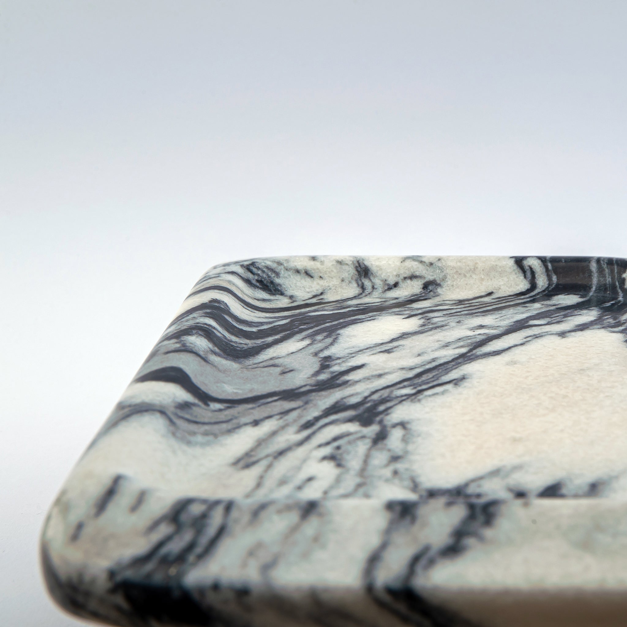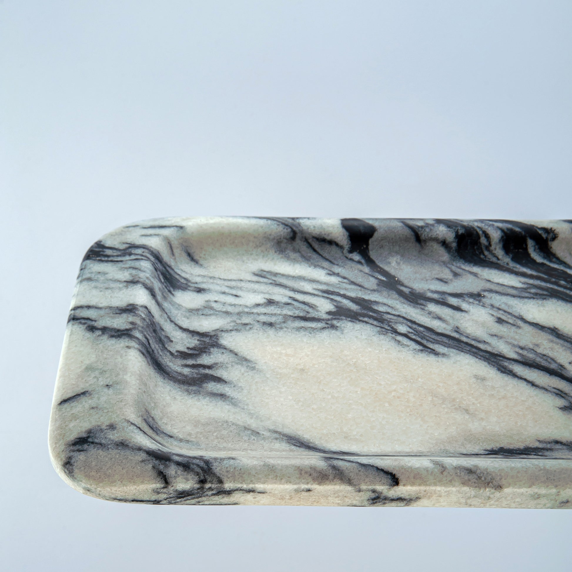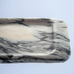As if sculpted by moonlight, Celestine Tray radiates a quiet elegance born from the natural veins of grey and white marble. Its smooth surface flows like ripples on a tranquil lake, with gentle curves that invite touch and contemplation. The intricate marbling, reminiscent of inked clouds stretching across a pale sky, tells a story unique to this singular creation.