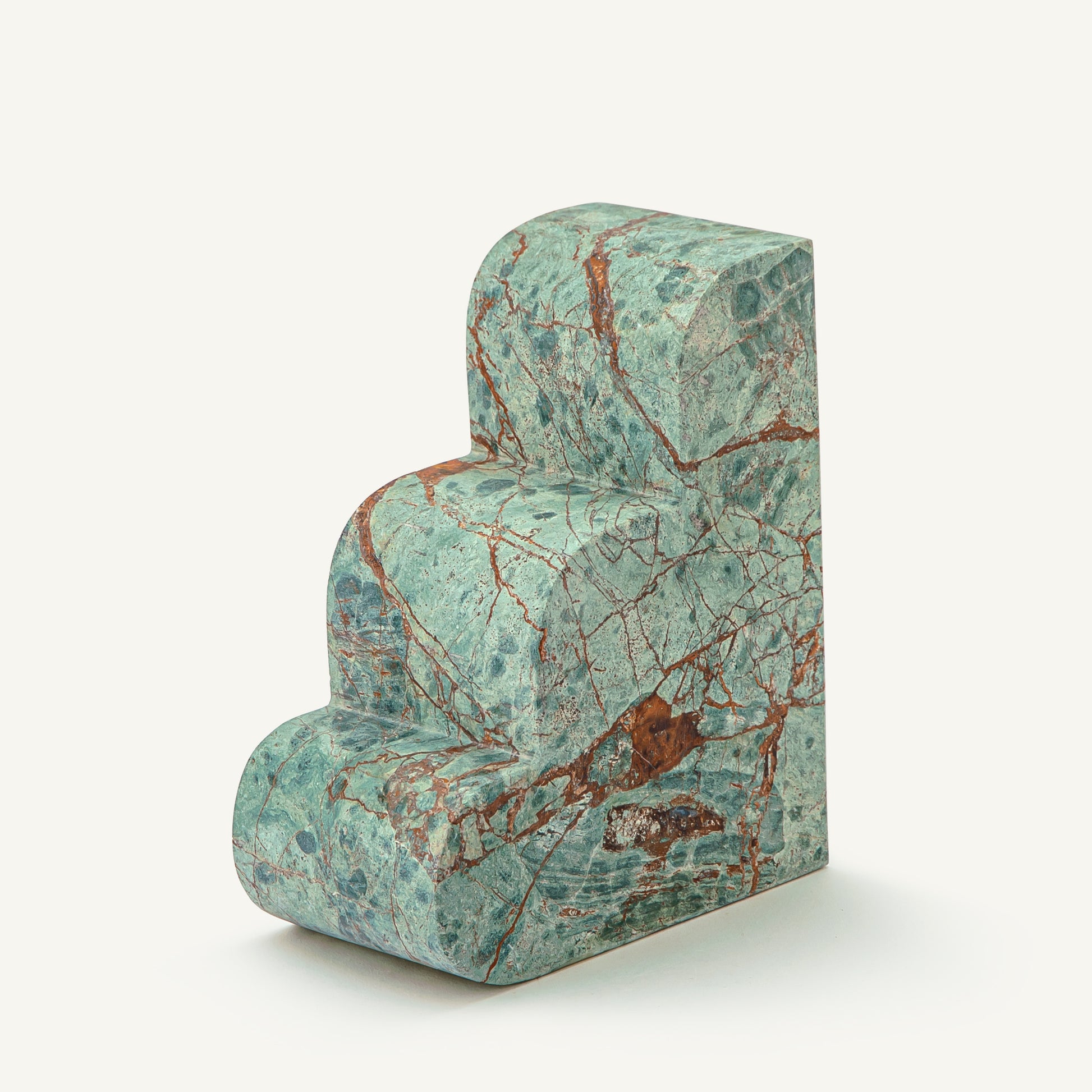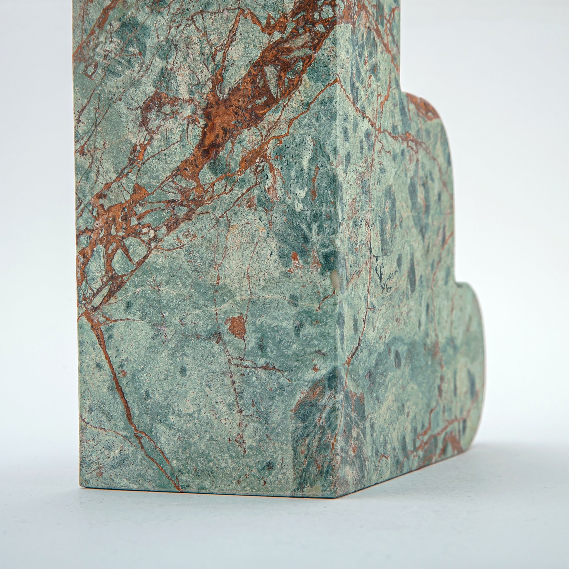 What sets this edition apart is the unique verde marble — a dramatic stone characterized by its rich green hues and rust-toned veining. These natural patterns form over millions of years, creating an intricate, unrepeatable design in every bookend. The bold interplay of color and texture makes each piece a visual anchor in any setting.