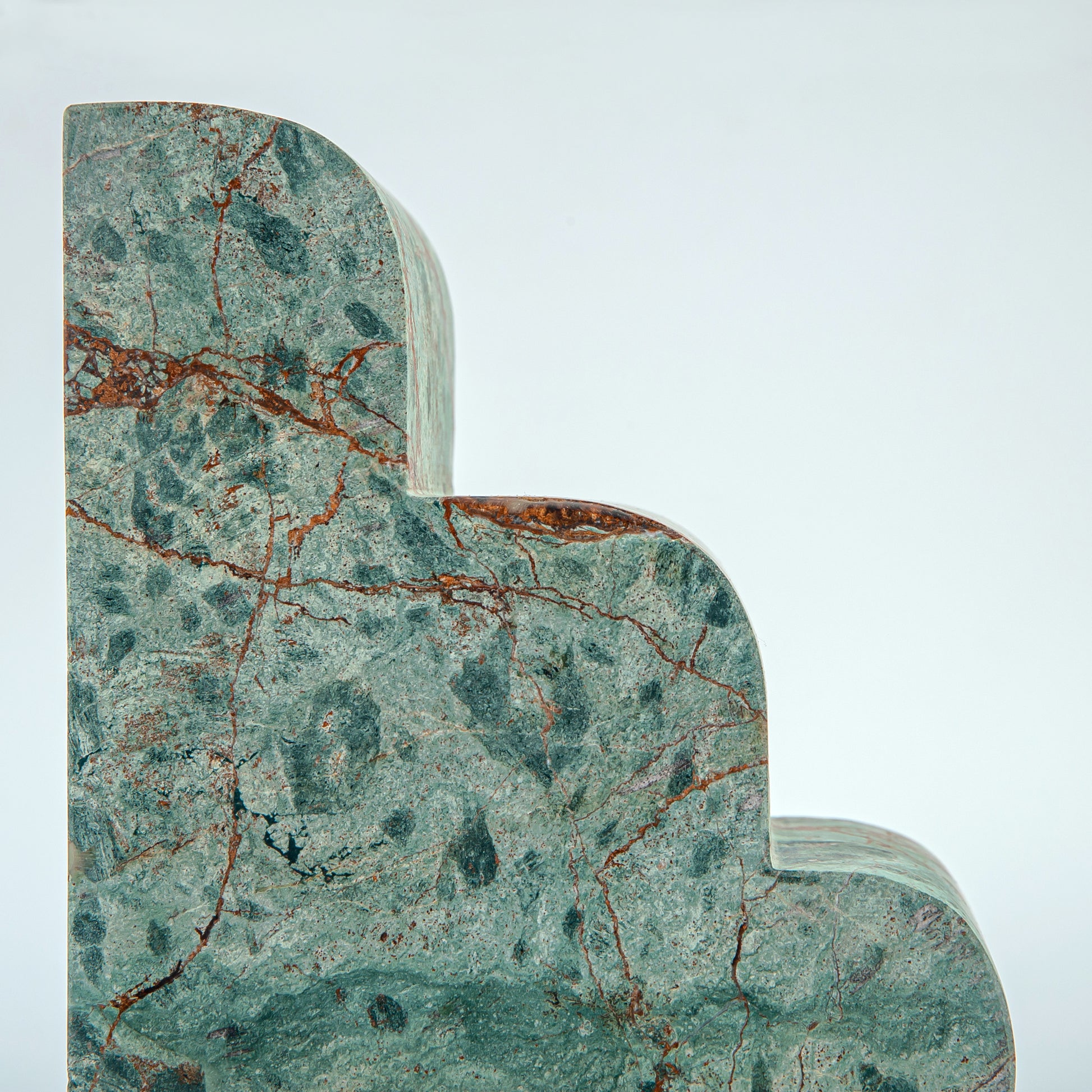 The Clouds Bookend Duo in verde marble brings a bold vibrancy to your interior with its sculptural curves and vivid, earthy coloring. Each piece is hand-carved to reflect the softness of cloud shapes, offering a striking contrast between organic form and natural intensity.