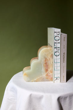 Carved from radiant natural onyx, the Clouds Bookend Duo is where sculptural elegance meets functional artistry. Each piece is handcrafted to echo the soft curvature of clouds, grounding your space with an earthy warmth while lifting it with its ethereal form.