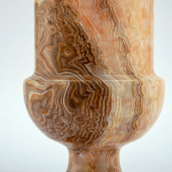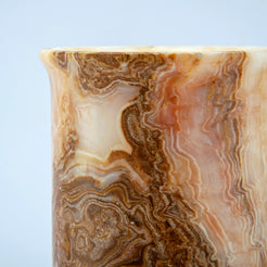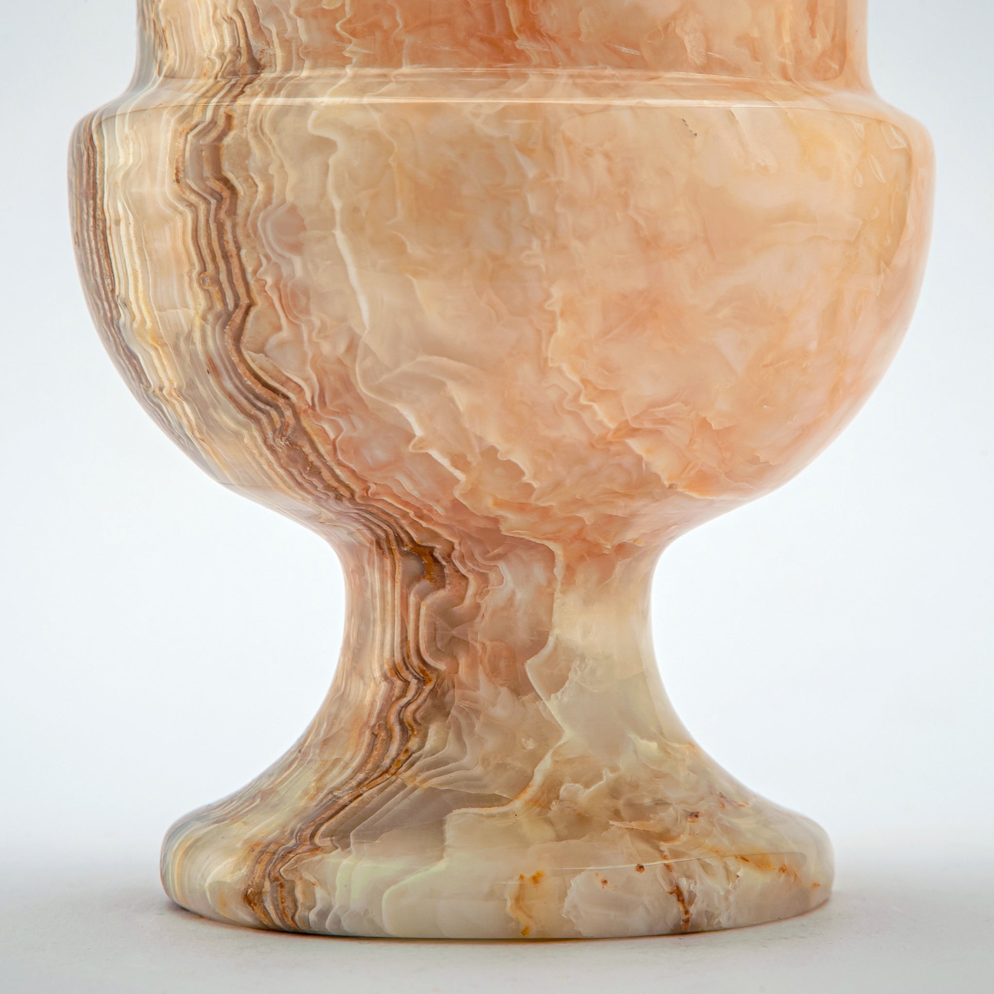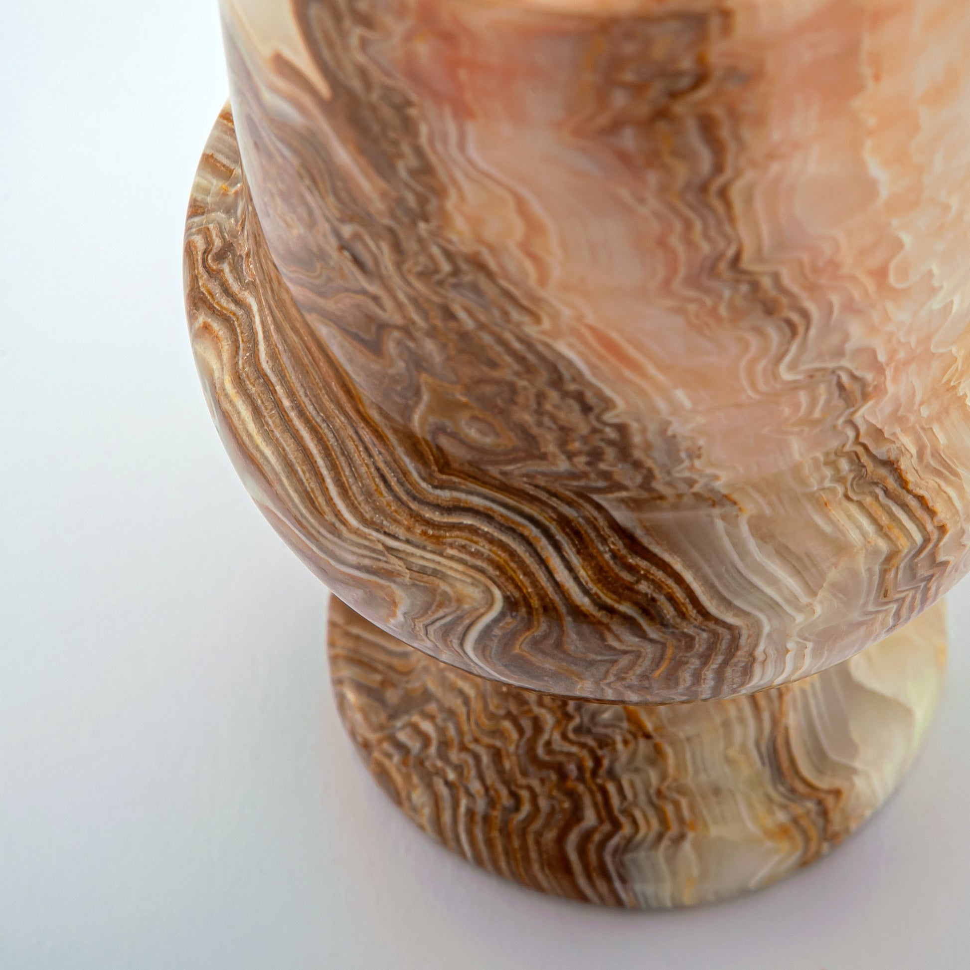 Coppa Aurea Vase is a one-of-a-kind piece carved from luminous onyx, distinguished by warm honey, amber, and soft cream veining.