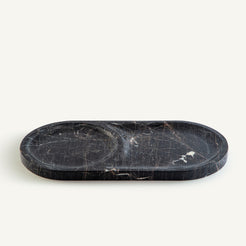 Featuring a divided design, the Eterno Tray offers two compartments, allowing for effortless organization and display of your essentials, from jewelry and keys to candles and decorative accents. Its smooth, polished surface adds a touch of elegance, while the sturdy marble construction ensures durability and timeless appeal.