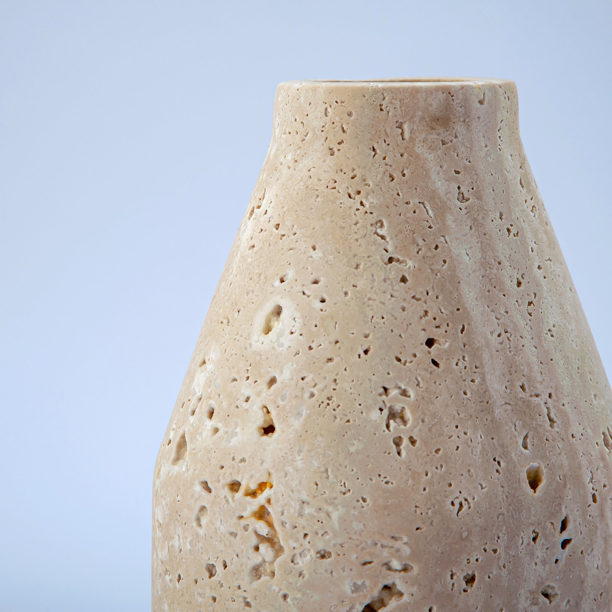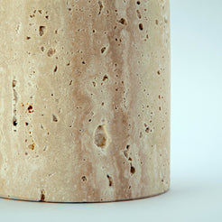 Hedra is a sculptural vase handcrafted in our atelier from rare natural travertine stone.