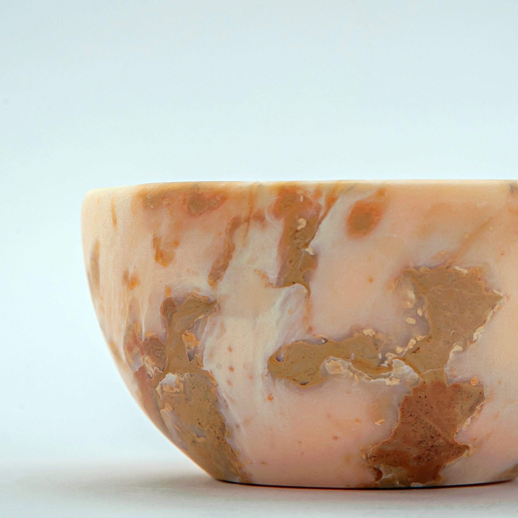 The Ivenne Bowl reflects the quiet warmth of natural light meeting stone. Hand carved from creamy onyx streaked with golden and amber veining, it carries a gentle luminosity that feels both grounded and ethereal.