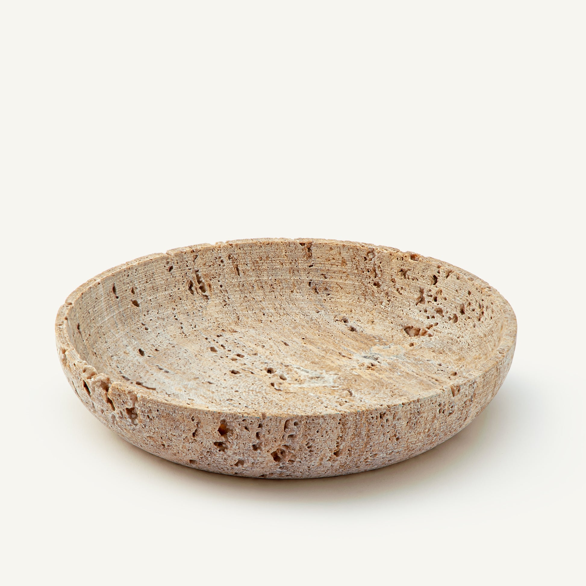 The Kaelis Bowl embodies a balance between organic texture and sculptural refinement. Hand-carved from natural travertine, it reveals the stone’s distinctive character, soft variations in tone, gentle pores, and a tactile surface that speaks of its natural origin.