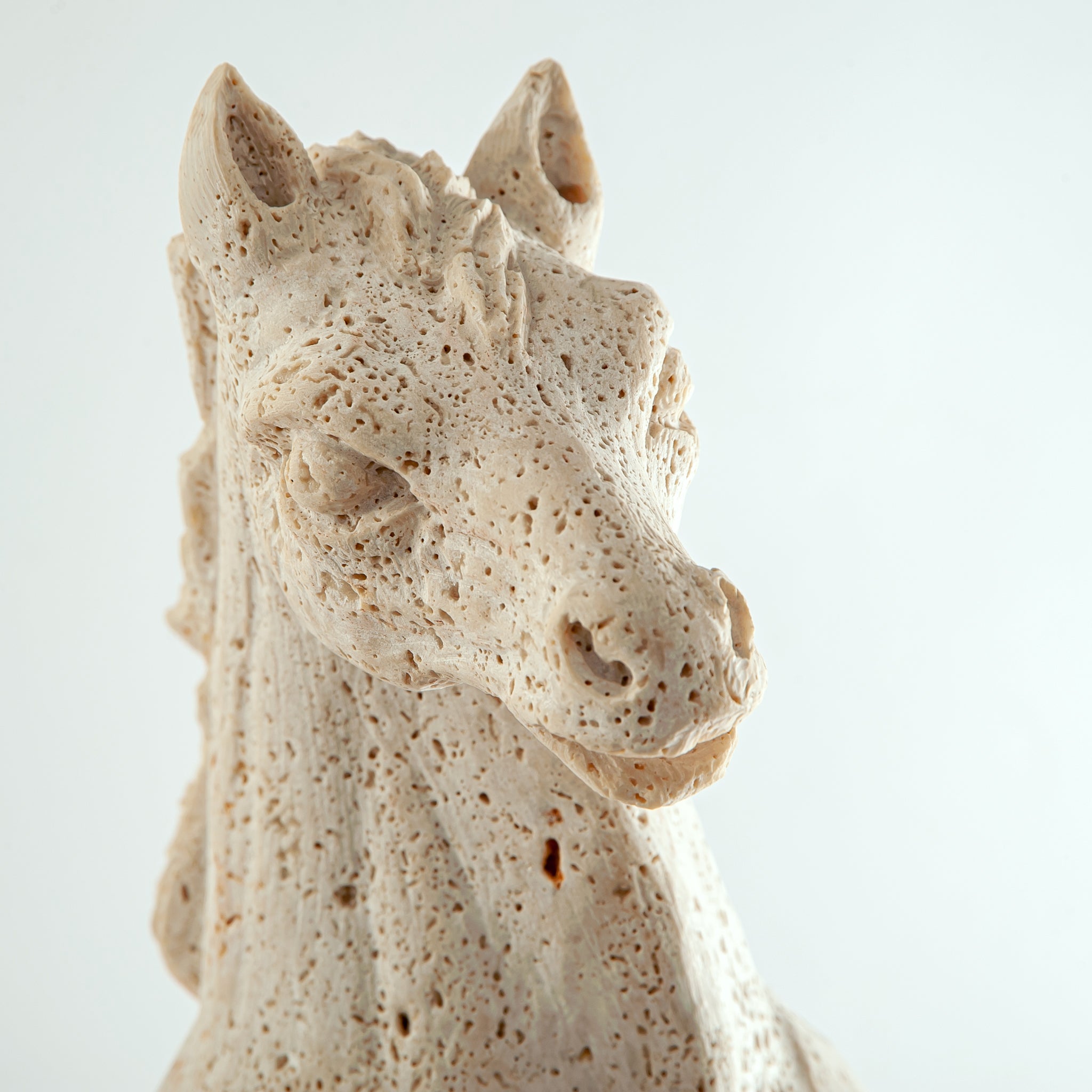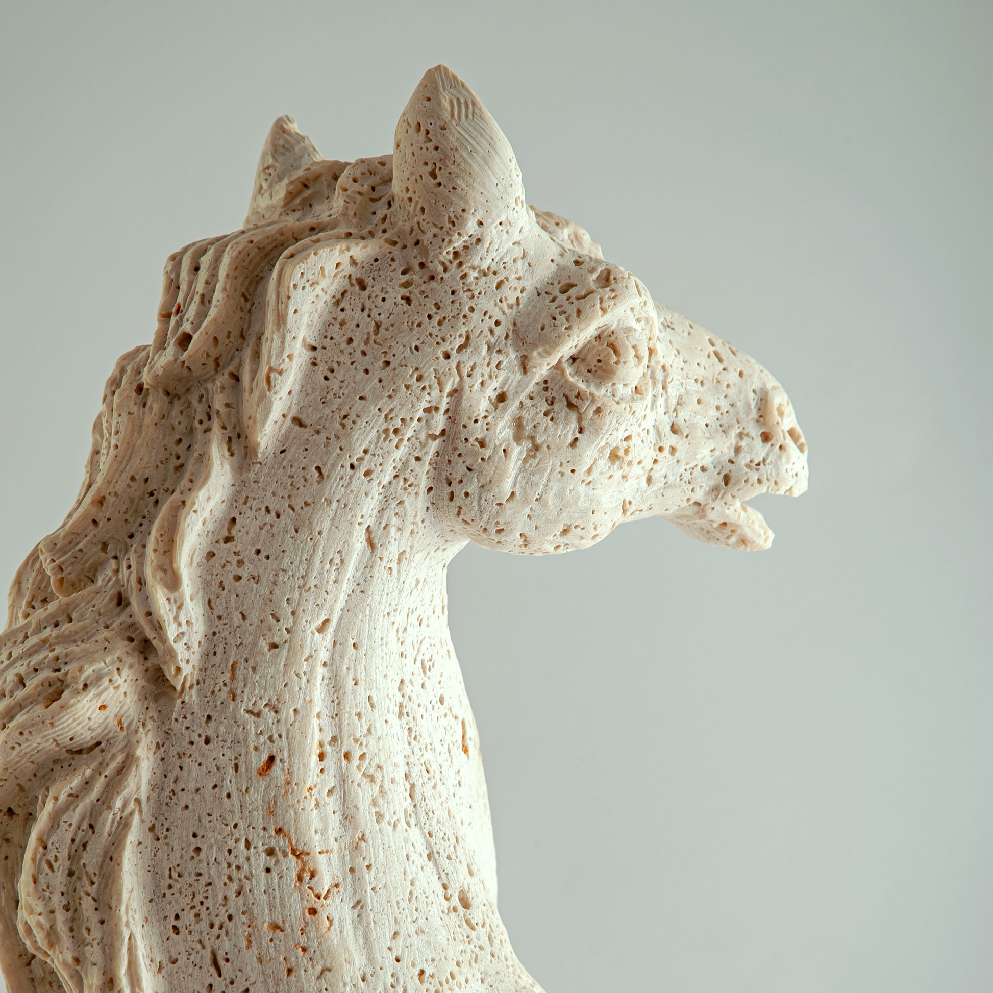 The Libertara Sculpture celebrates the timeless spirit of freedom, captured in the powerful form of a rearing horse. Carved from natural travertine, its dynamic pose radiates strength and vitality, while the stone’s textured surface grounds it in the language of the earth.