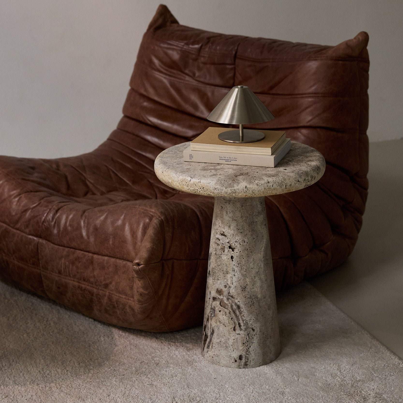 Naxos Side Table, a symbol of natural elegance and robust charm. Crafted from exquisite travertine, the Naxos feature...