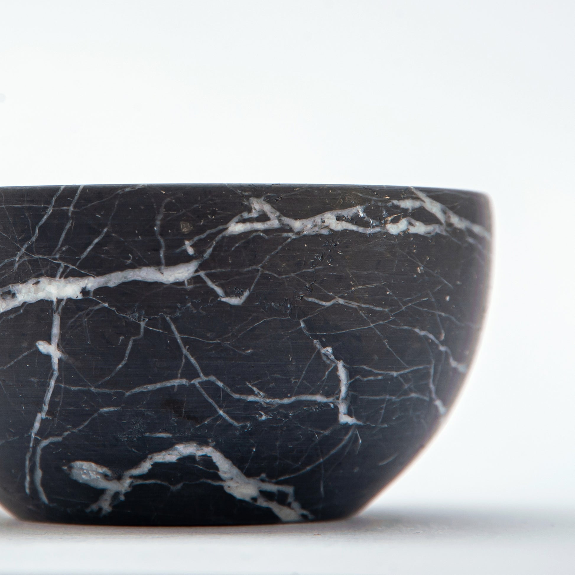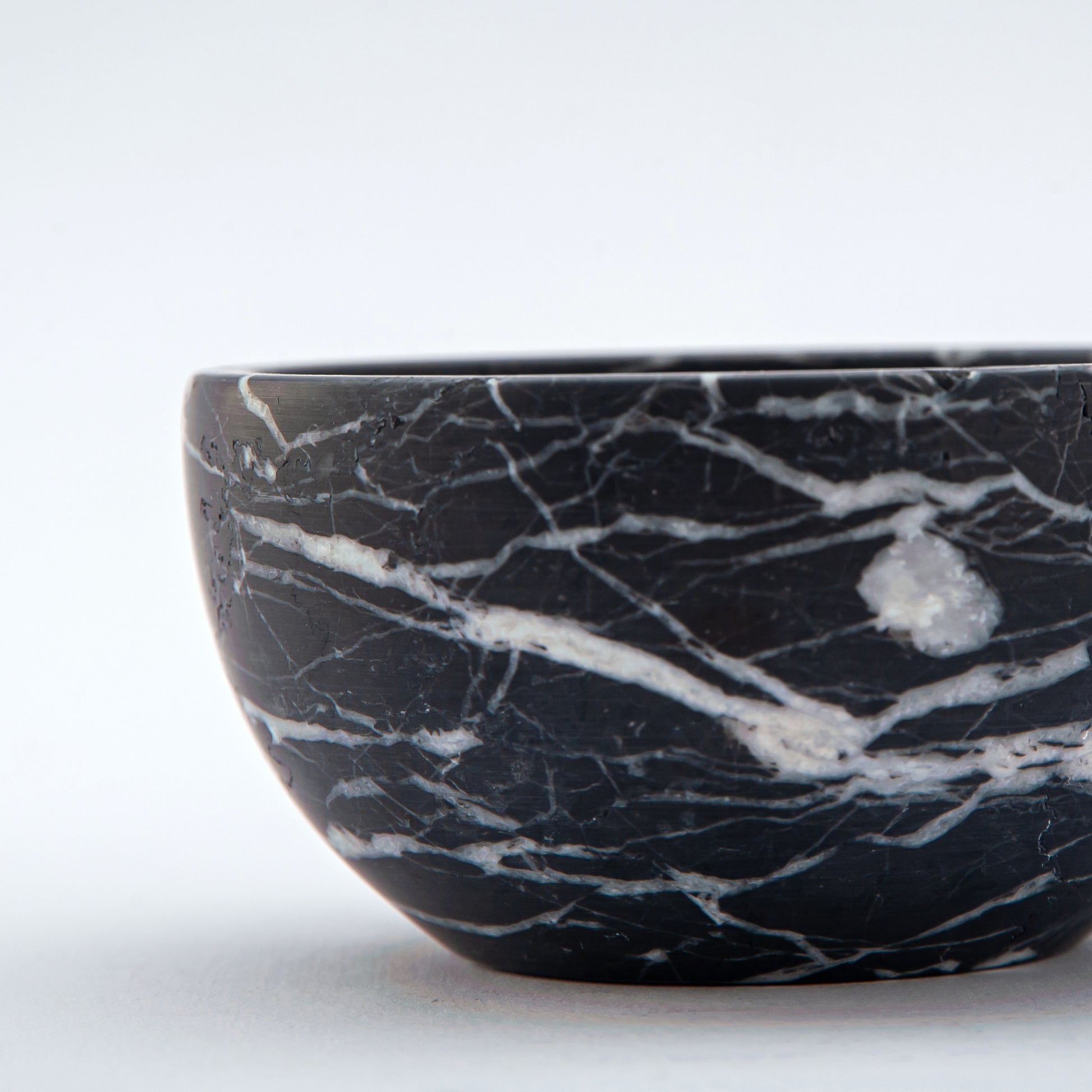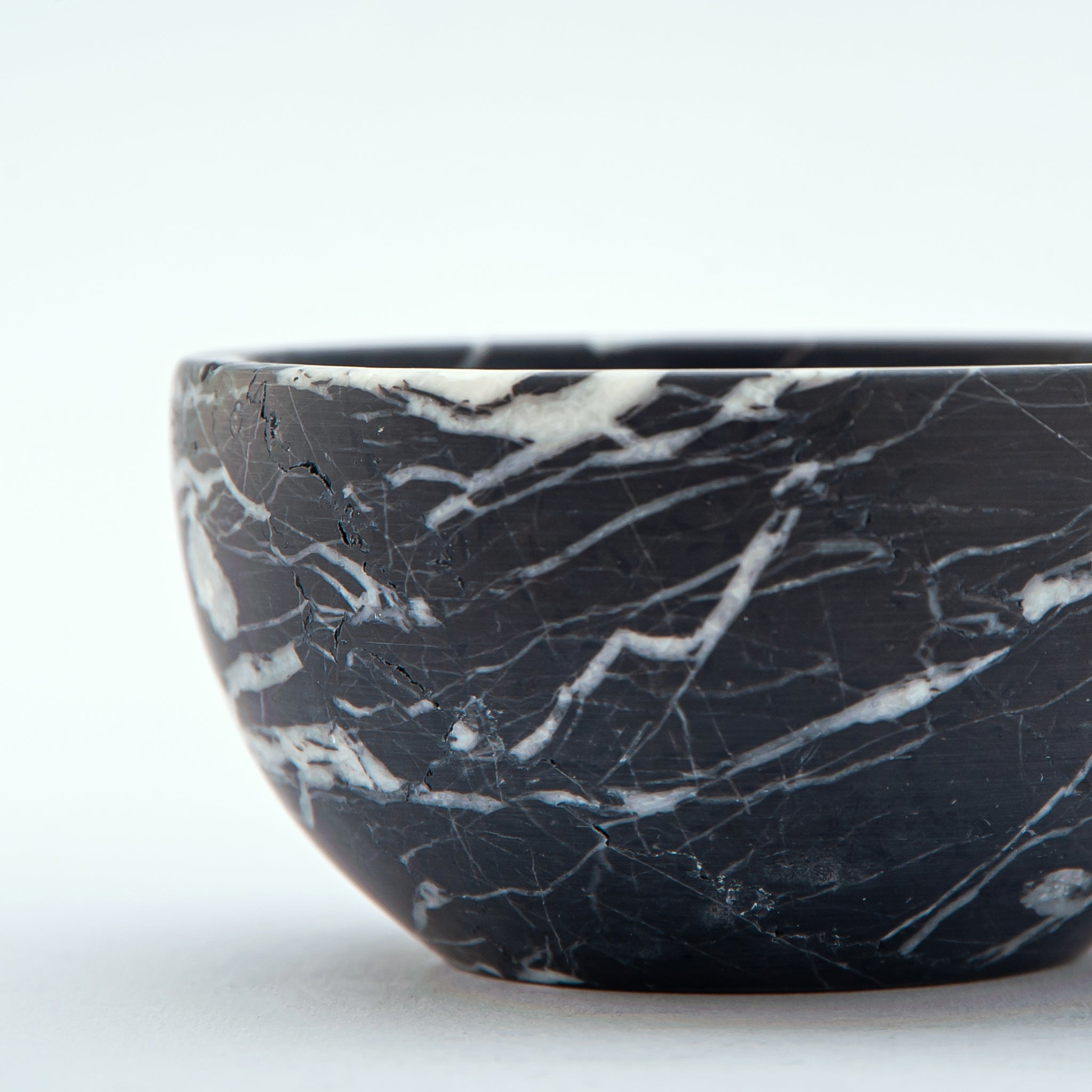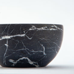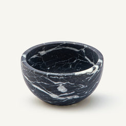 The Nocten Bowl embodies quiet strength and sculptural grace. Carved from deep black marble veined with silken traces of white, it captures the stillness of night and the natural rhythm of stone.