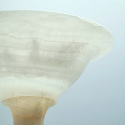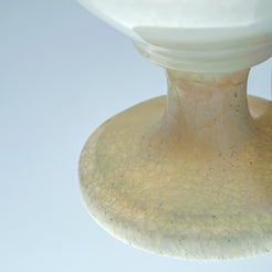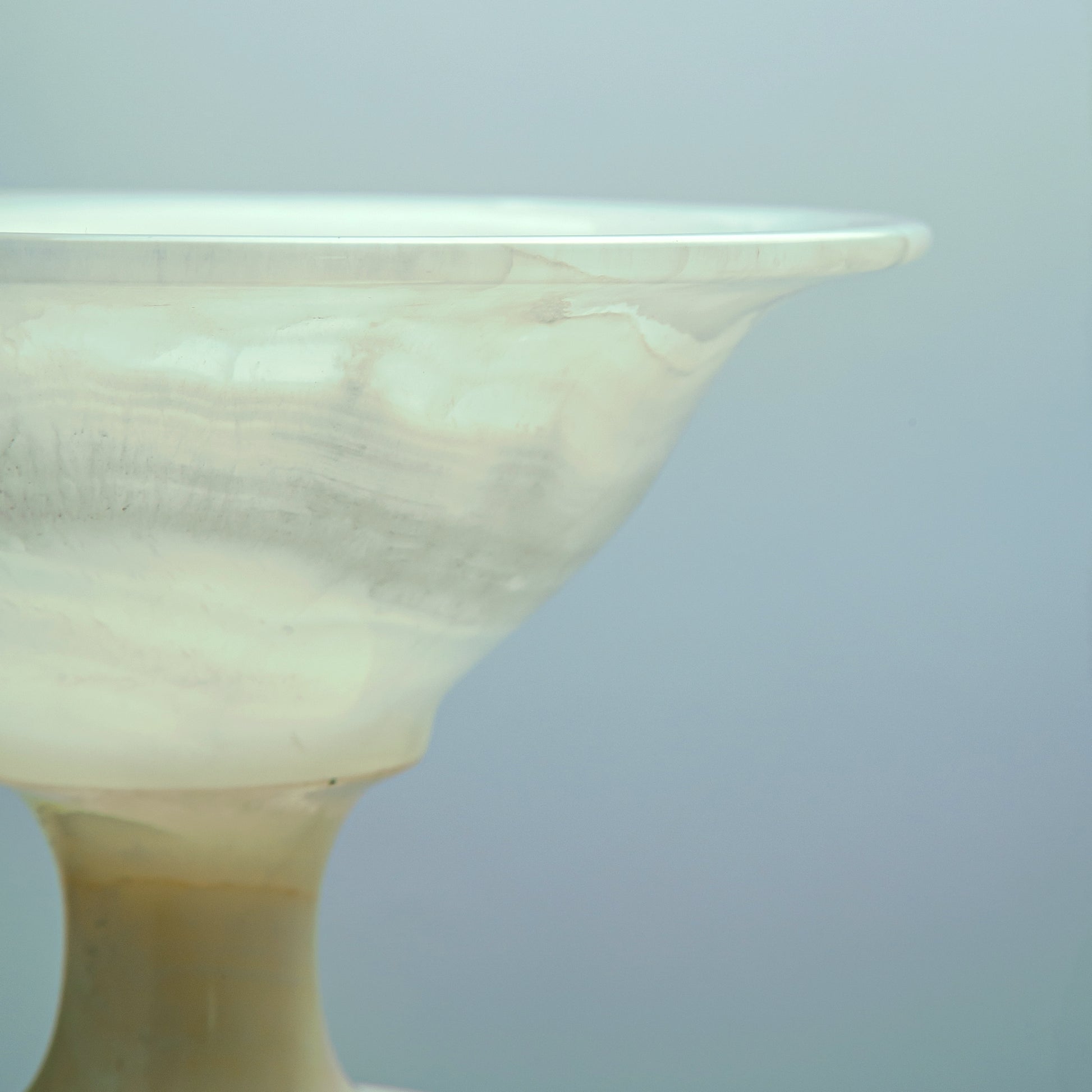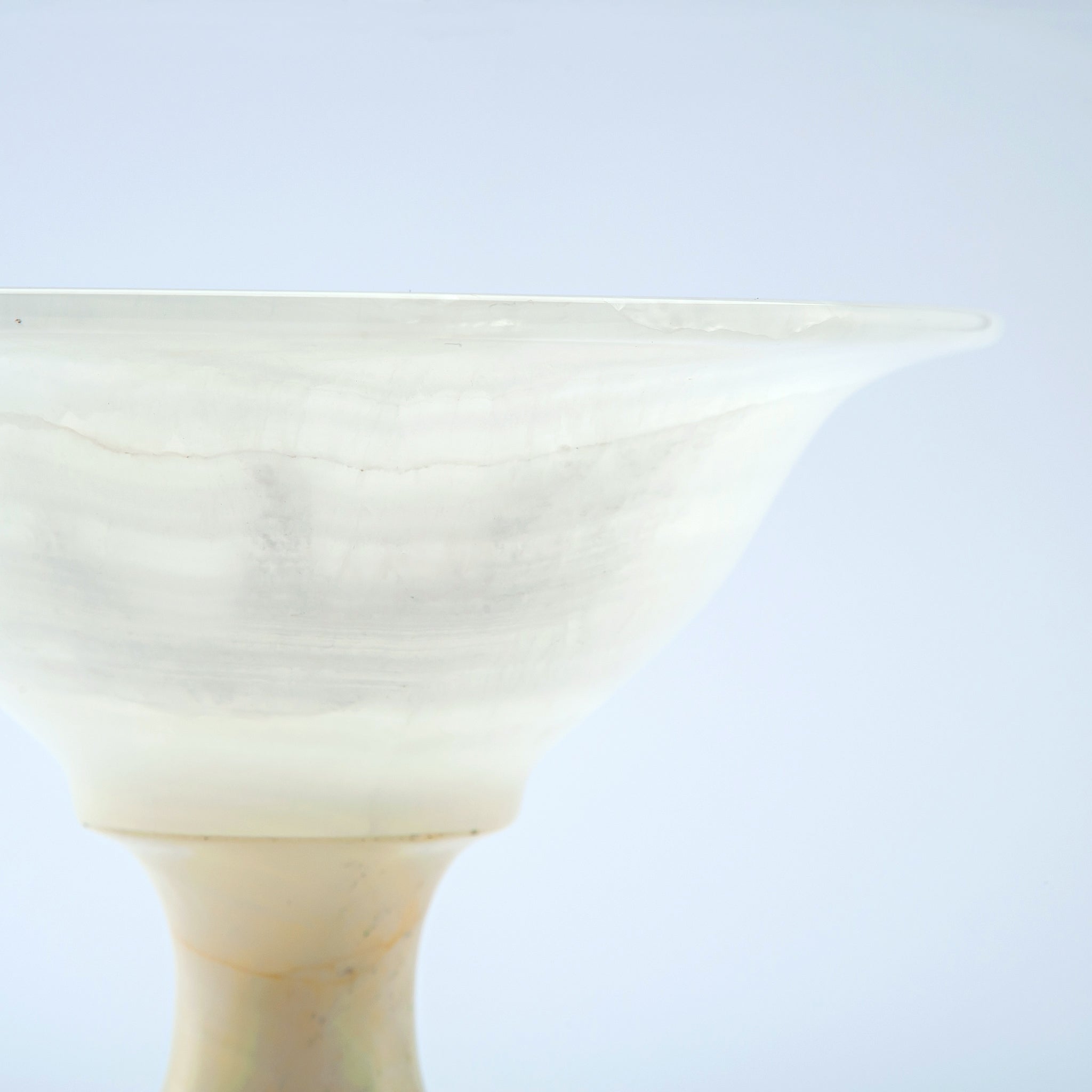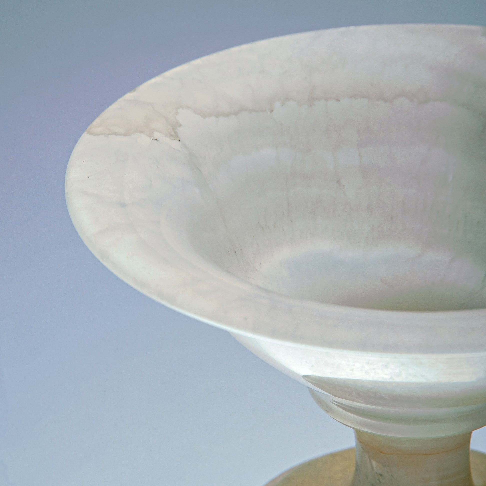 Its wide, gently flared form rises on a slender pedestal, creating a light, almost floating presence.