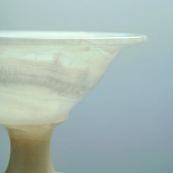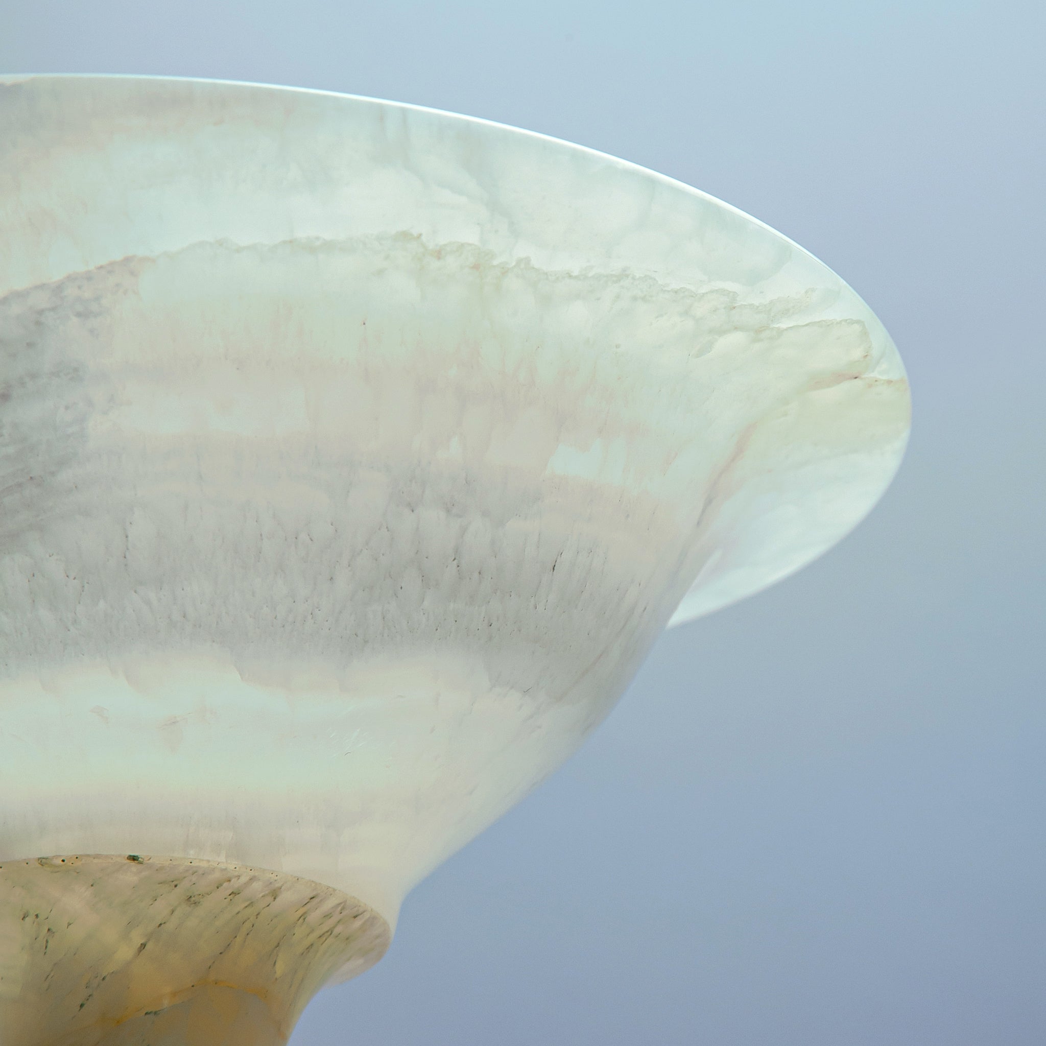 Nysa Bowl is a one-of-a-kind piece carved from pale, translucent onyx in soft ivory and cream tones.