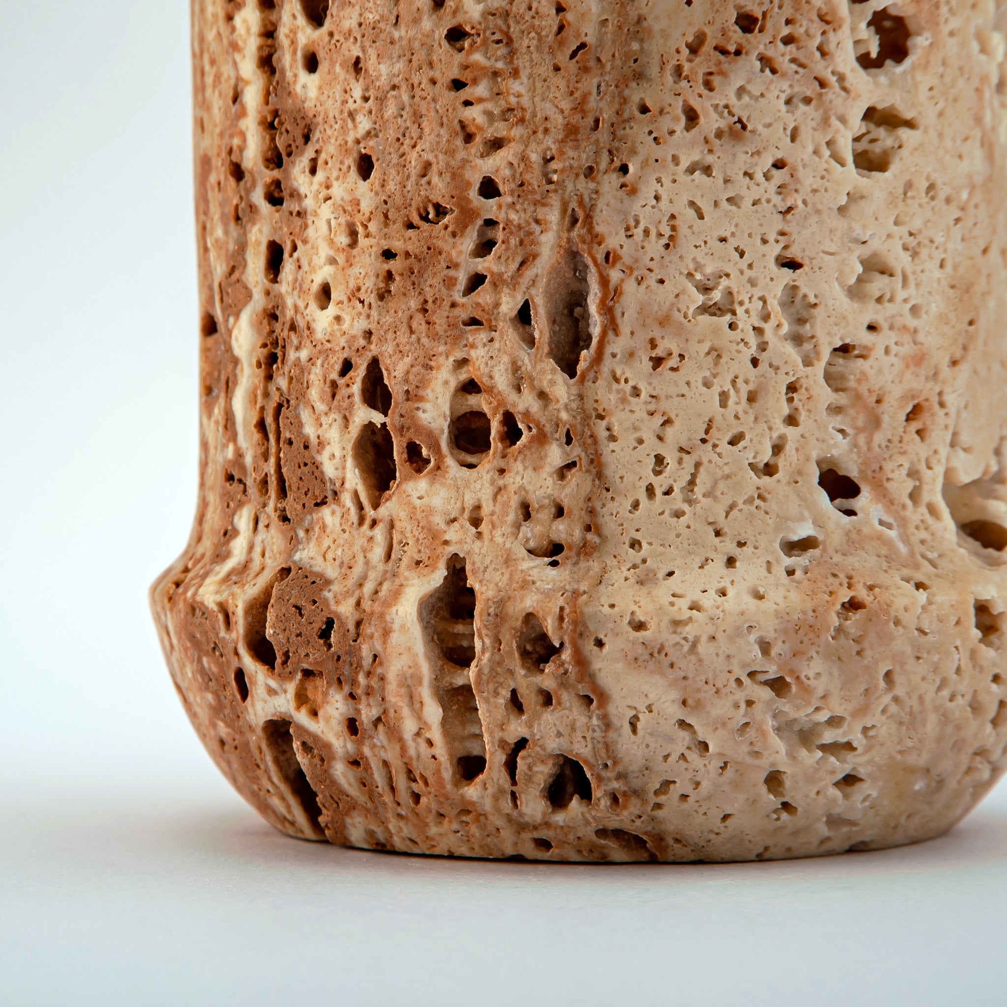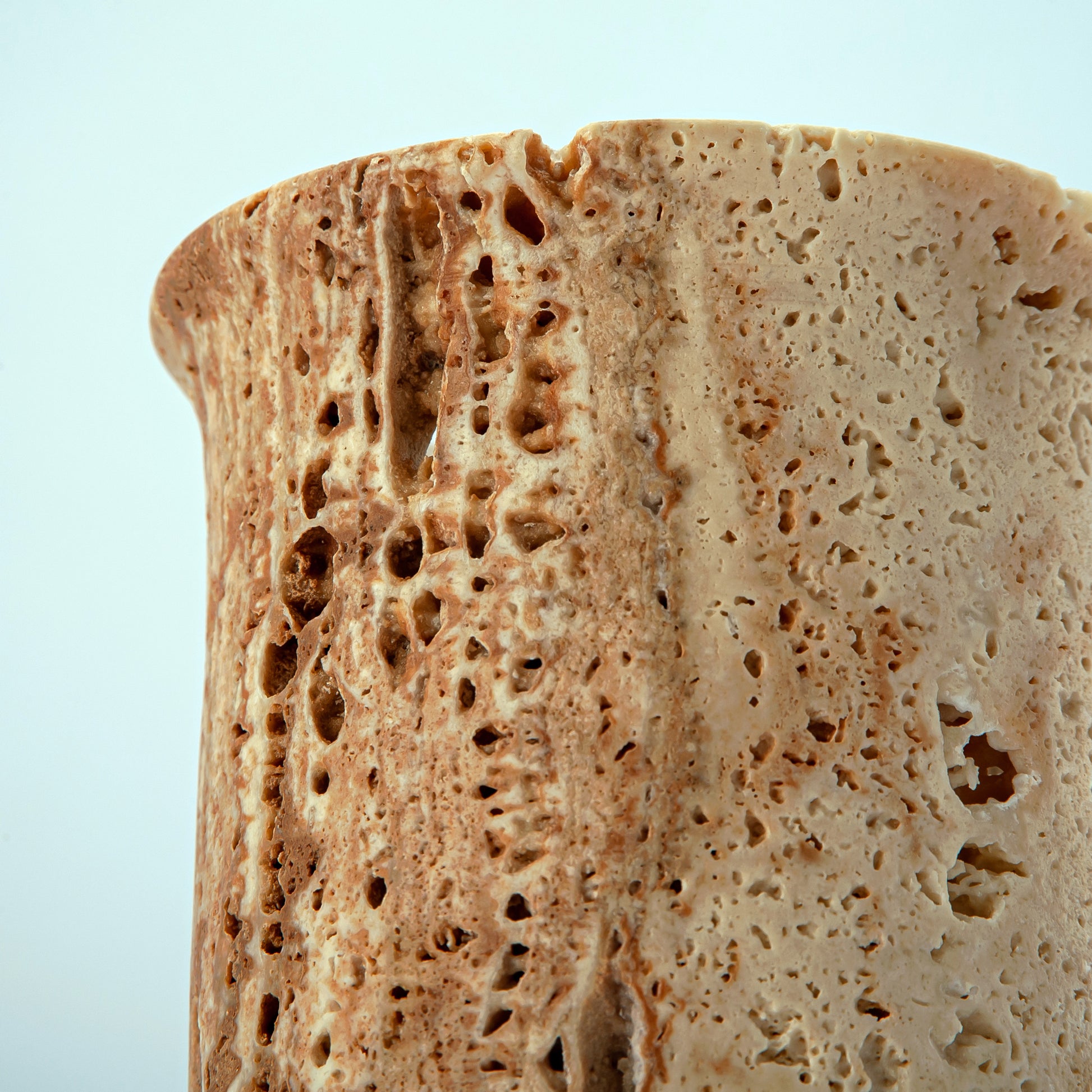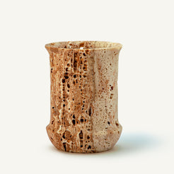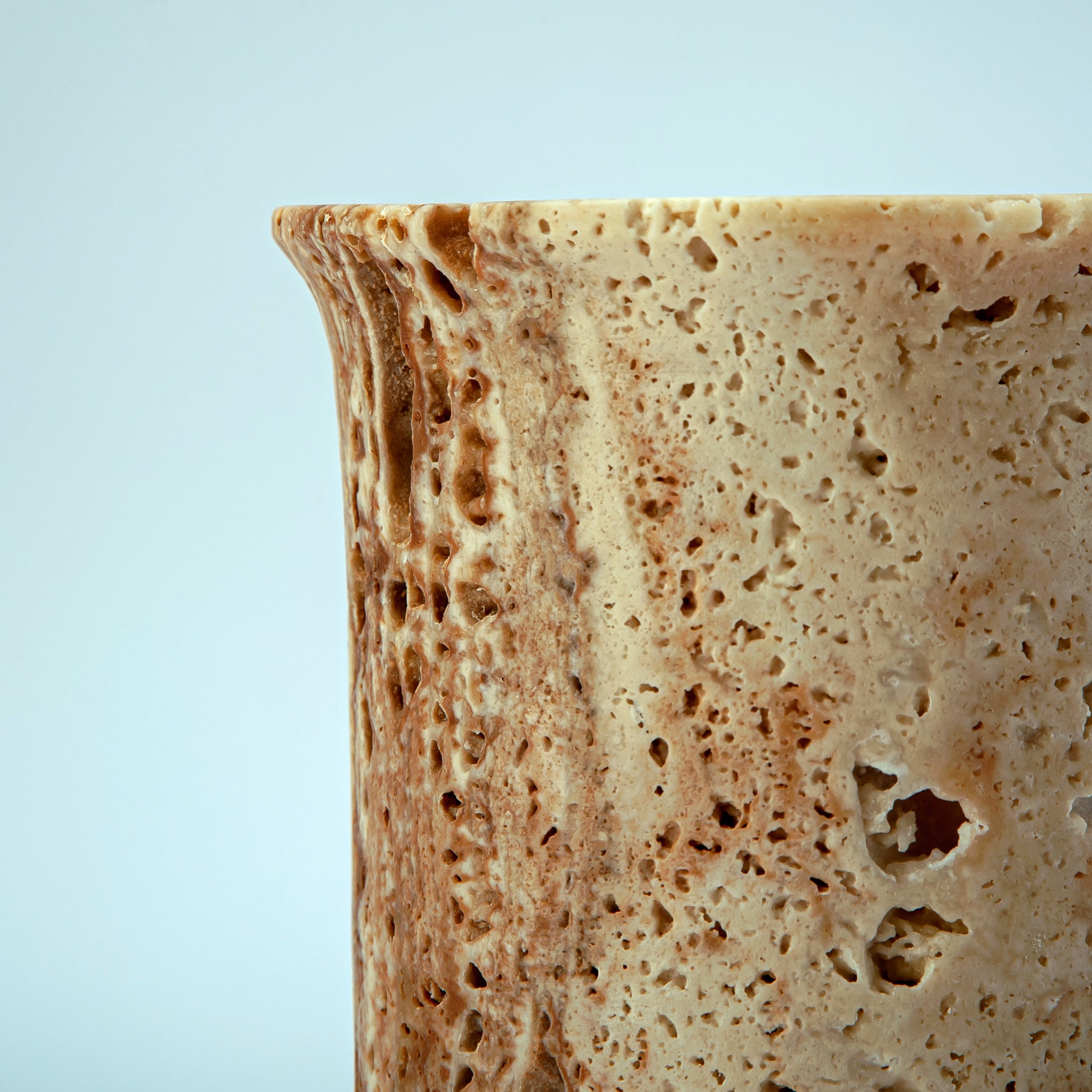 The Olyra Vase embodies organic form and quiet strength. Hand-carved from natural travertine, its rounded base and gently flared rim reveal the stone’s porous texture and earthy warmth. Each vessel carries unique variations in tone and surface, shaped by nature and refined by hand.