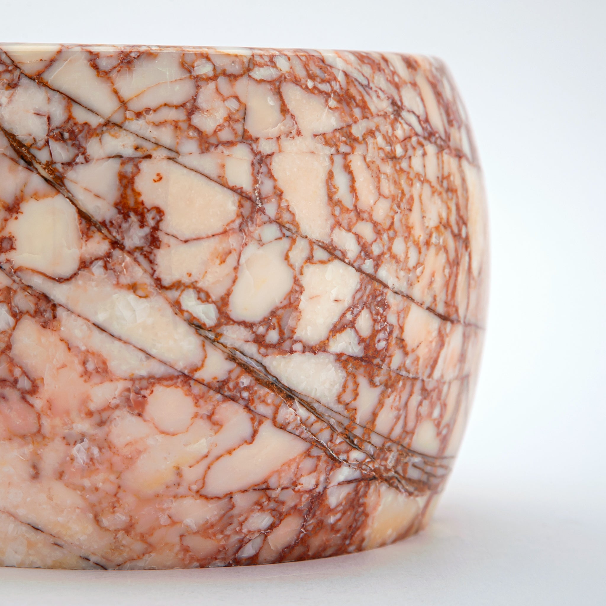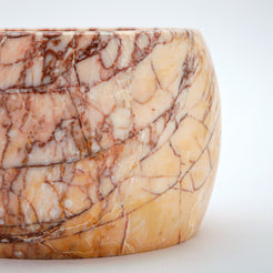 The Rosavita Bowl is a sole creation, sculpted from exceptionally rare pink marble with intricate, naturally flowing veins in shades of rose, ivory, and deep crimson. Its organic patterns turn this piece into a timeless expression of elegance and rarity.