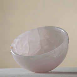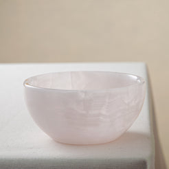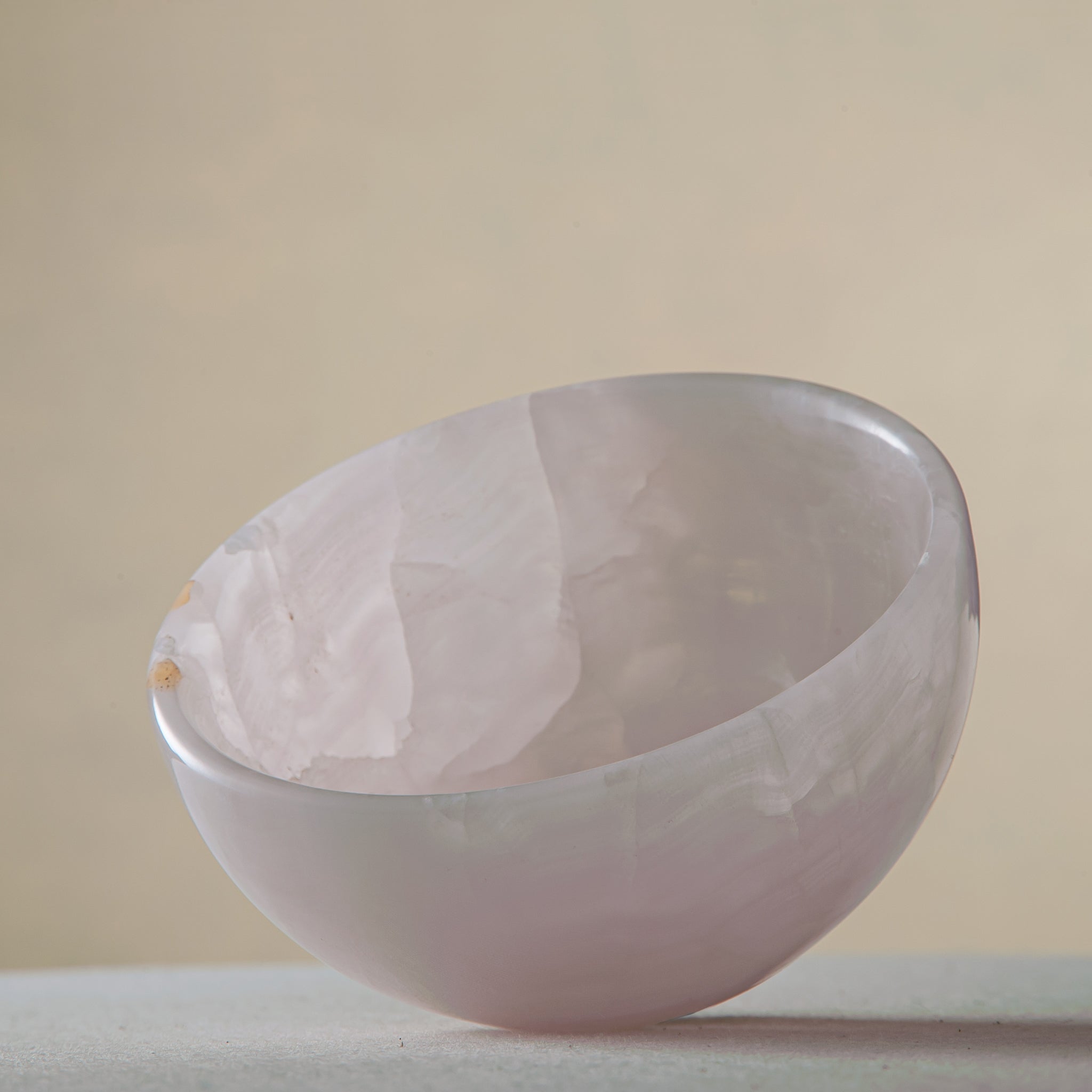 The Rosélia Bowl is carved from delicate pink onyx, prized for its soft translucency and gentle, powdery tones. Subtle layers of blush, ivory, and warm mineral hues move through the stone, creating a calm, luminous surface that responds beautifully to light.