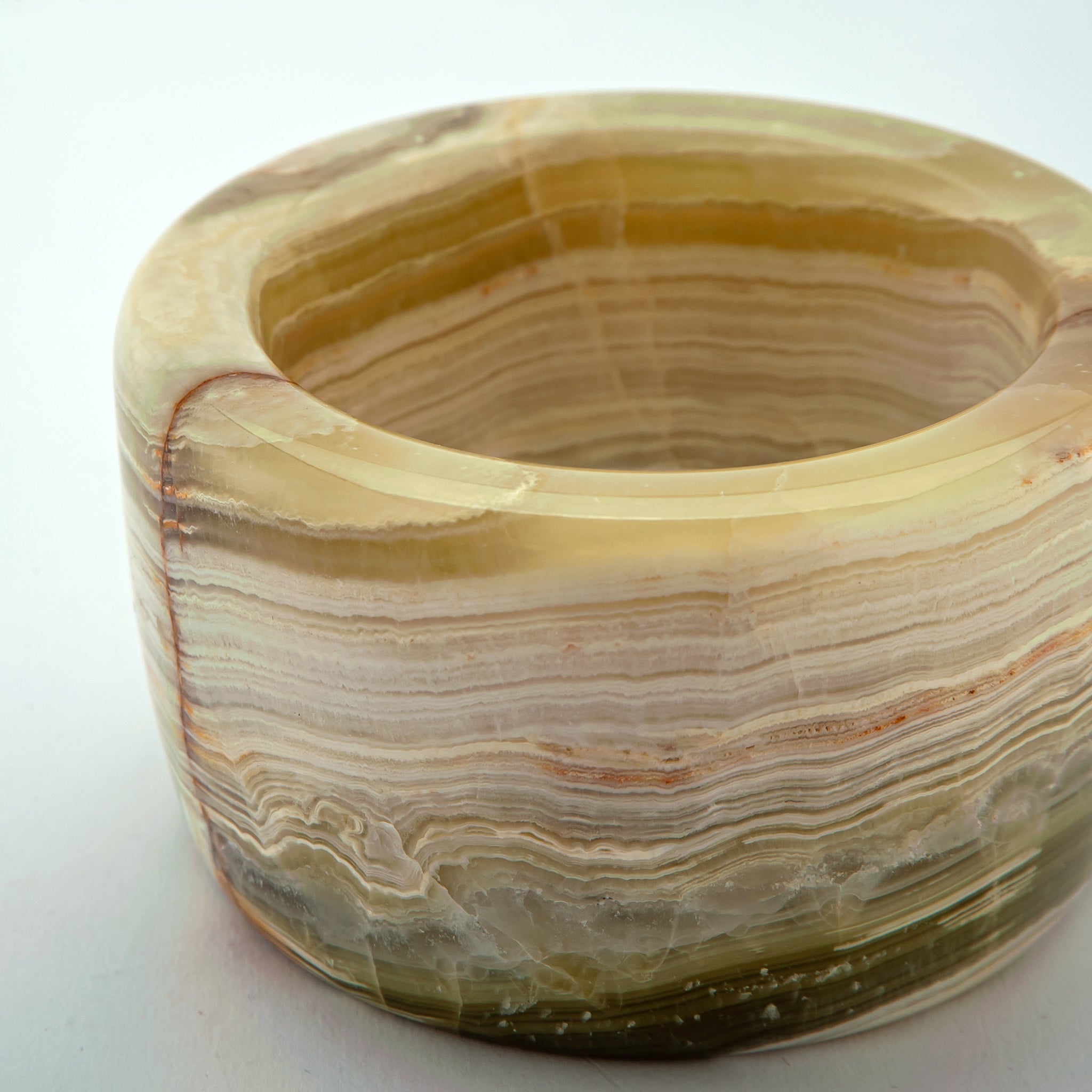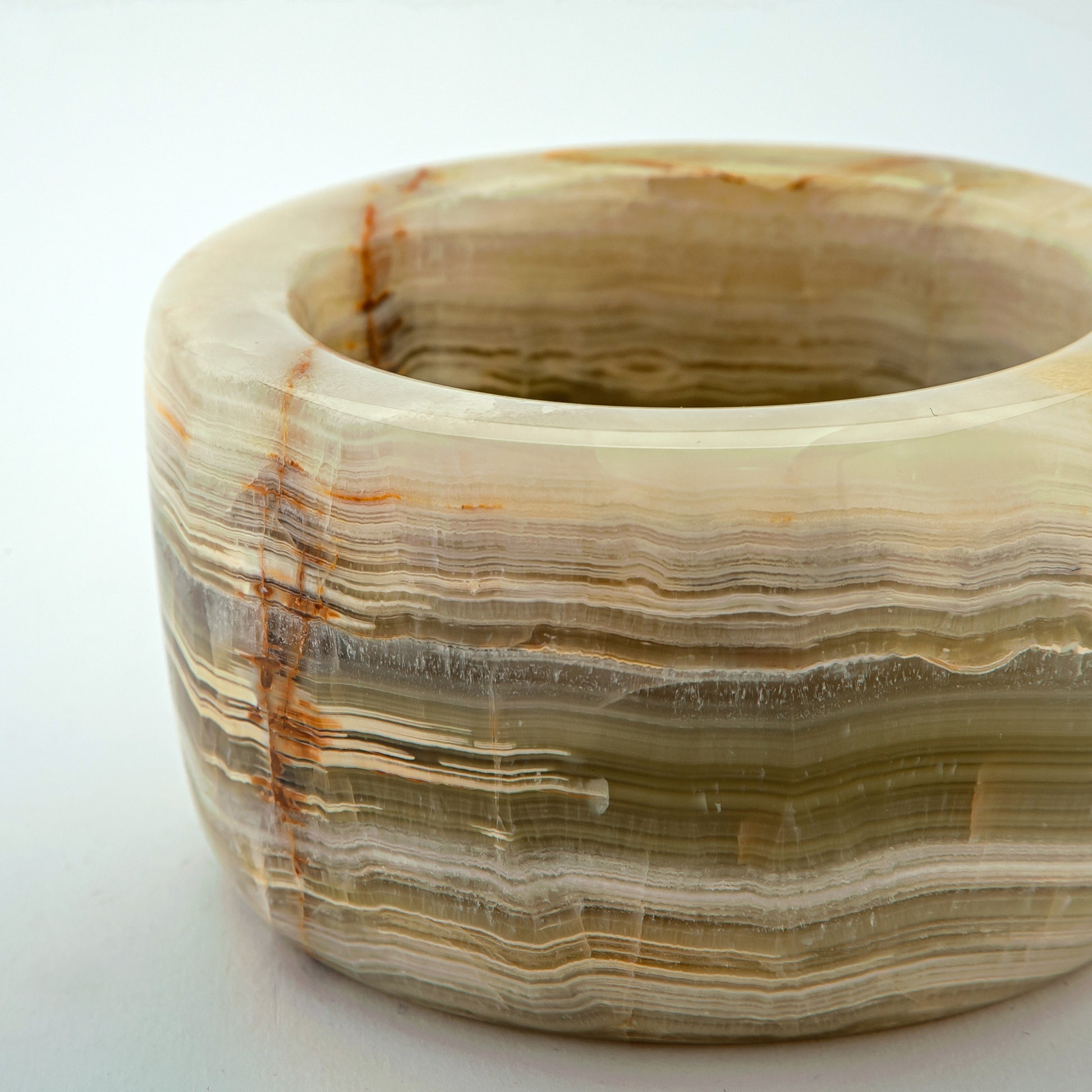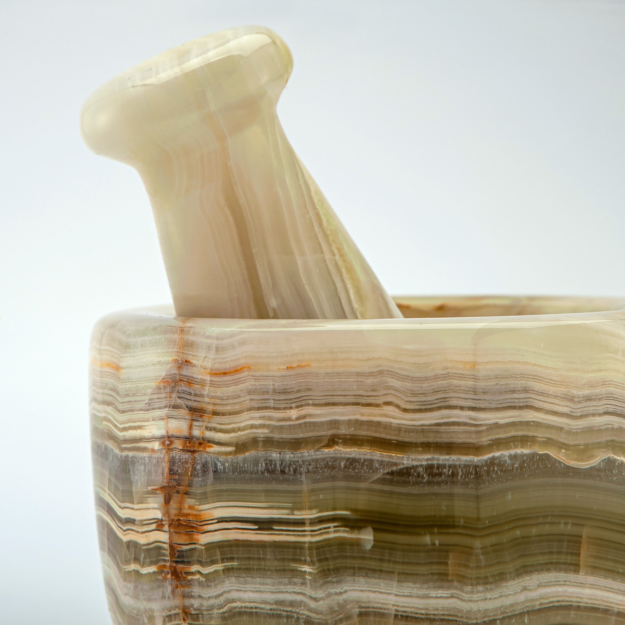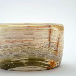 The Sienar Mortar & Pestle is a celebration of craftsmanship and natural beauty, carved from richly banded onyx. Its warm layers of cream, amber, and earthy sienna create a striking visual pattern, turning this everyday kitchen tool into a work of art. The weight of the stone provides exceptional stability, while the smooth, rounded pestle offers a comfortable grip for grinding spices, herbs, and pastes with precision.