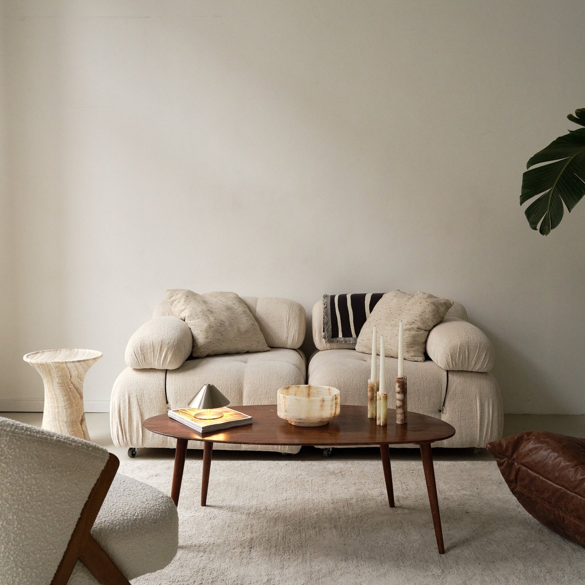 At Uniiqo Studio, every creation begins at the source, deep in the mountains, where we personally travel to select rare blocks of onyx, travertine, and marble. We handpick each stone for its exceptional color, veining, and natural character, ensuring that only the most extraordinary materials become part of our collection. These stones, shaped over thousands of years by nature, are then entrusted to our skilled artists, who craft them by hand into timeless objects for modern living.