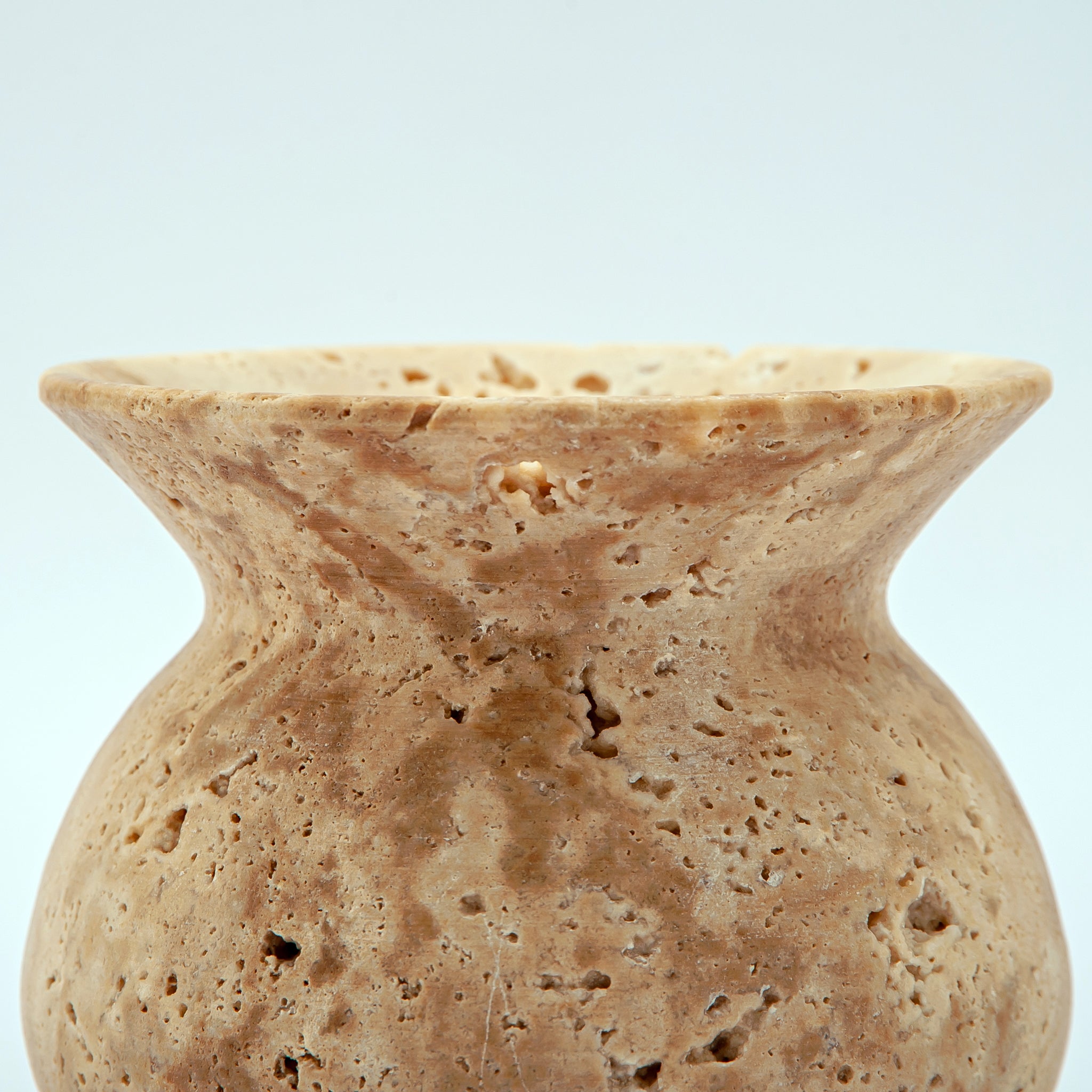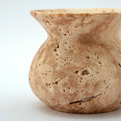 Its warm earthy beige tones and porous texture reveal the stone’s organic origin, shaped into a soft rounded form that balances strength and elegance.