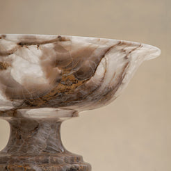 Elevated on a gently tapered pedestal, the bowl’s form feels both architectural and delicate, balancing strength with restraint. Fine variations in veining, tone, and structure are inherent to the stone, ensuring that no element can ever be replicated. This exact Valen Bowl exists only once in the world — a singular expression of rarity, craftsmanship, and quiet presence, owned by you alone.