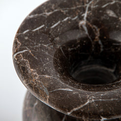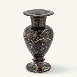 The Veloryn Vase is a vessel of quiet grandeur, carved from dark marble laced with golden and silvery veins. Its form is timeless, echoing classical silhouettes, while the stone itself holds the drama of night skies illuminated by fleeting light.