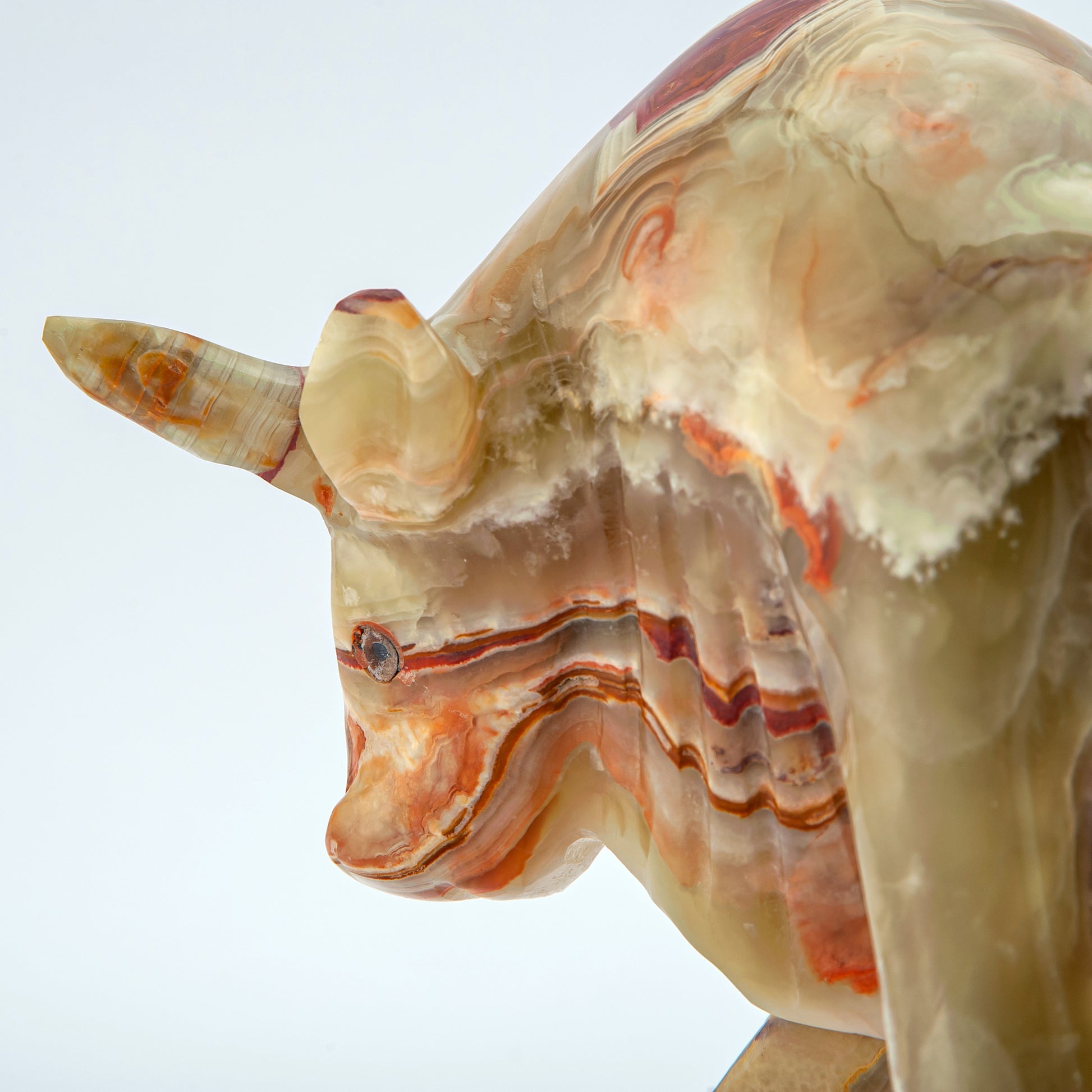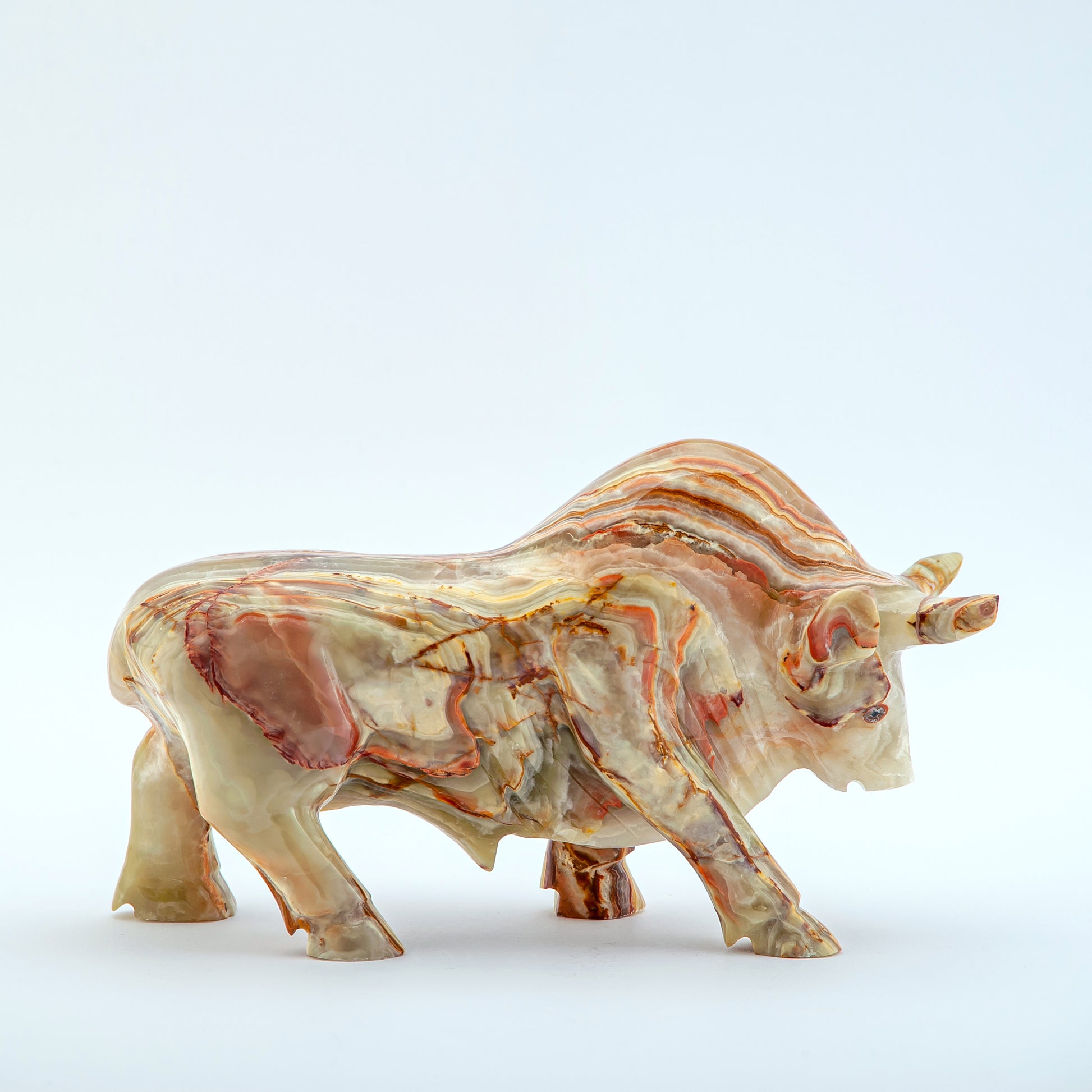 Carved entirely by hand from a single block of onyx, Verdanox captures the strength and resilience of the bull through its grounded stance and flowing contours. Each sculpture is a one-of-a-kind piece; variations in color, veining, and pattern are inherent to the stone and highlight its exceptional rarity.